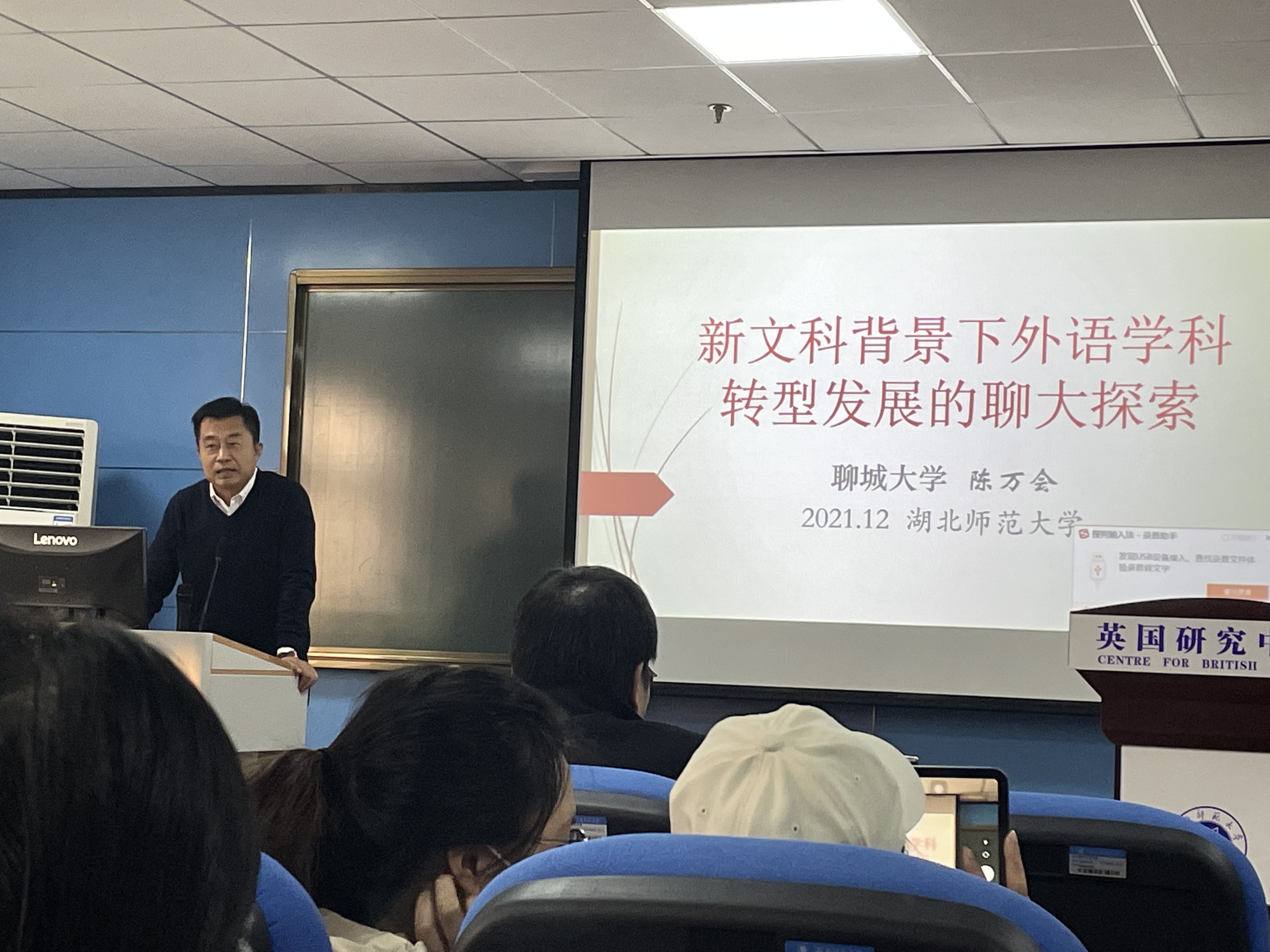 2021年12月27日下午,苏州科技大学第一会所 院长郭富强教授、上海应用技术大学第一会所 院长陈家旭教授、聊城大学第一会所 院长陈万会教授受外国语学院邀请,在21B404英国研究中心给第一会所 师生作了题目分别为“英汉对比:语言研究的重要手段”、“英汉语言文化对比”、“新文科背景下外语学科转型发展的聊大探索”的学术讲座。此次讲座由我院南潮副院长主持,丰国欣院长及外院师生参与聆听了本次讲座。