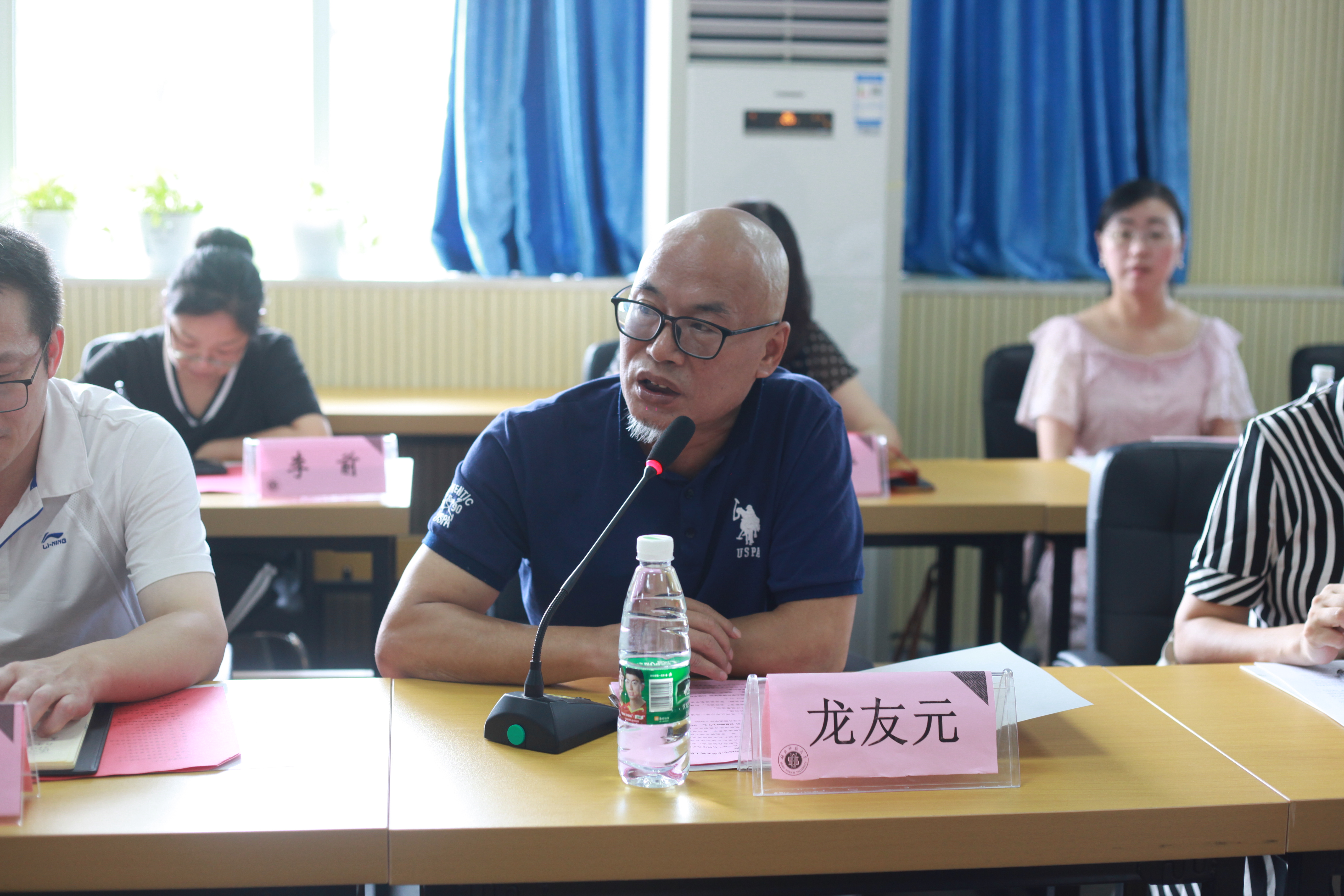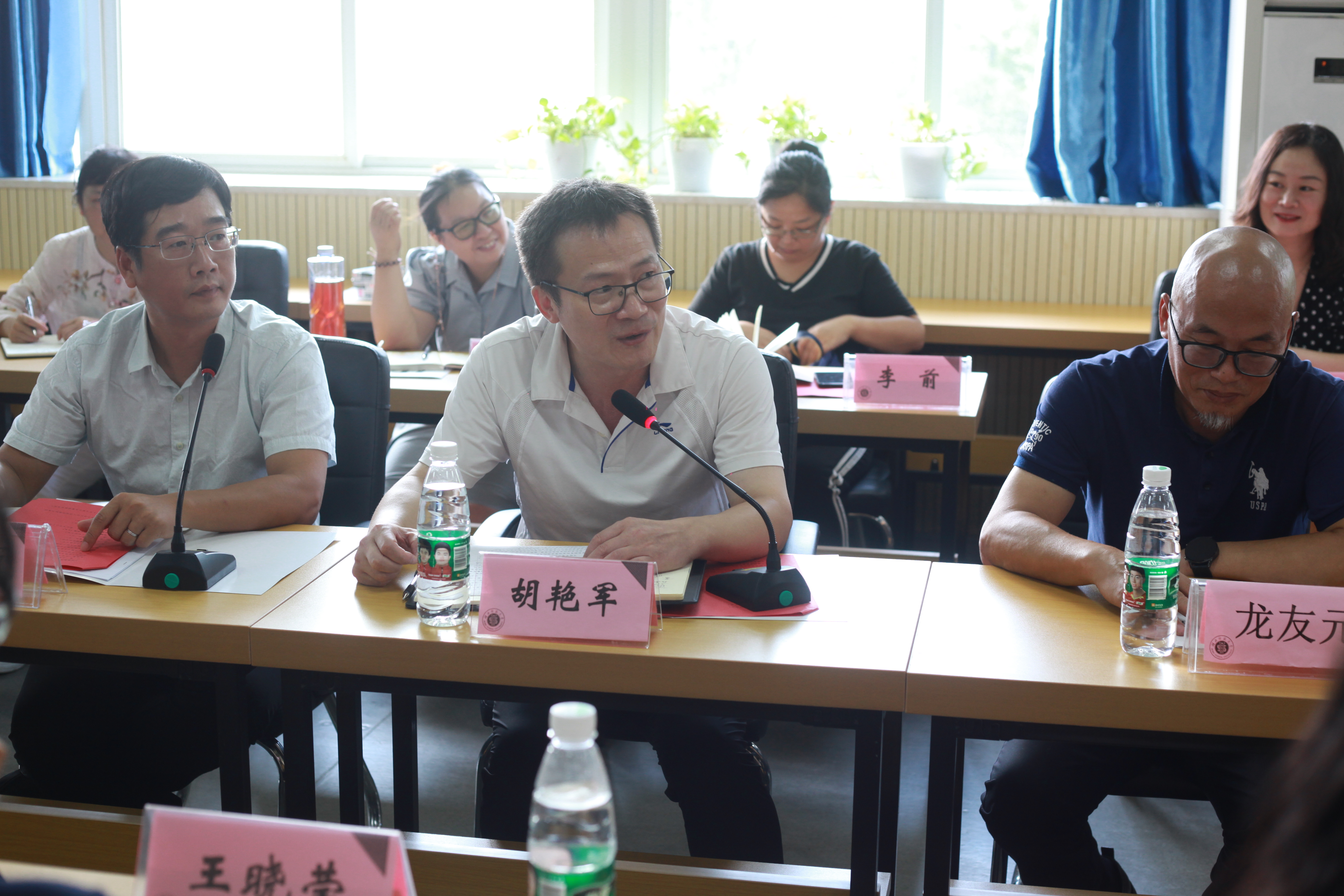 教务处处长胡艳军、第一会所 党委书记龙友元、第一会所 副院长龚波、教师教育学院副院长姚菁、英语系系主任朱勇进、刘敏名师工作室、胡智全名师工作室、宋溢青名师工作室、王晓莹名师工作室等参加本次交流研讨,会议由副院长龚波主持。