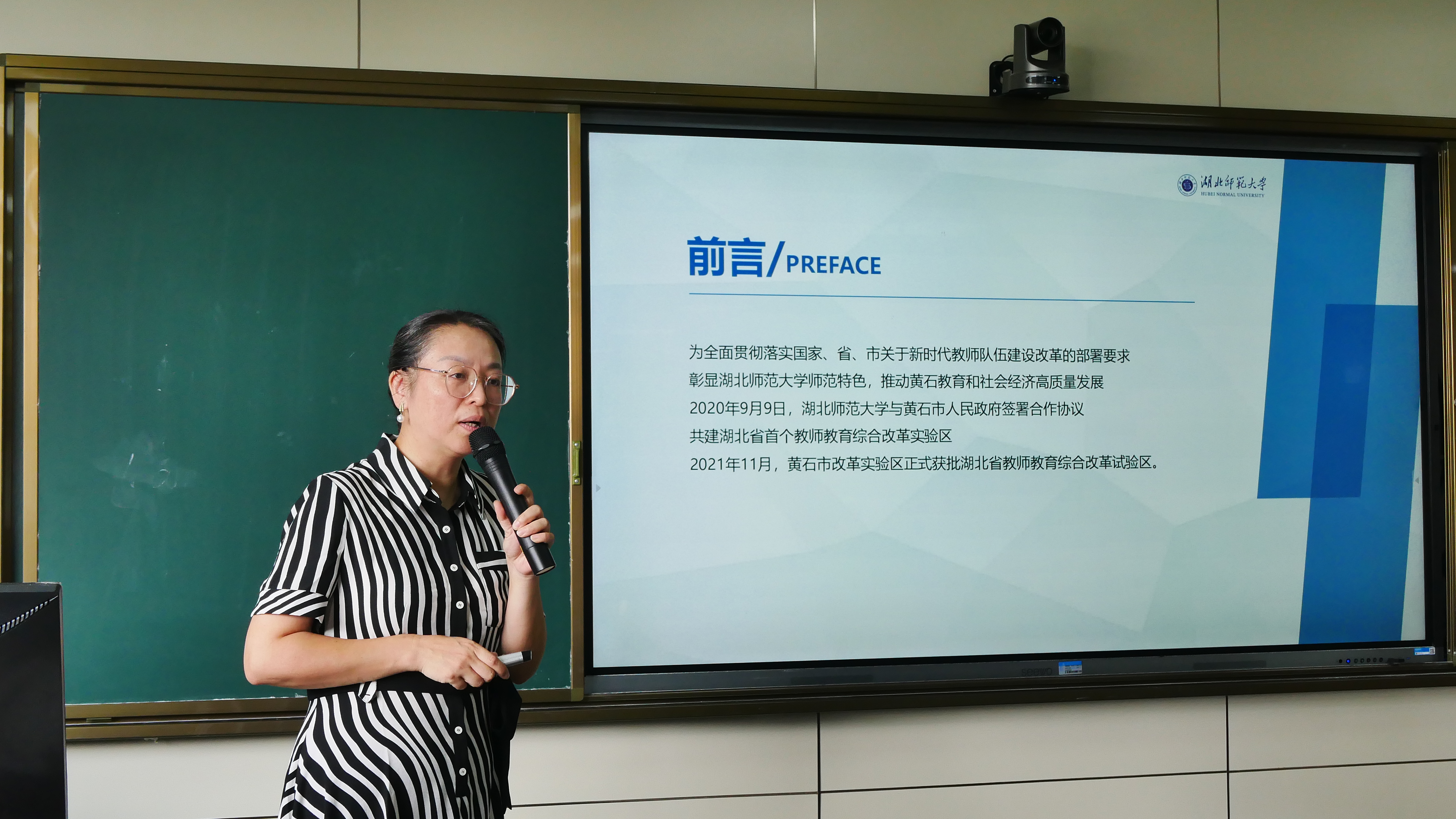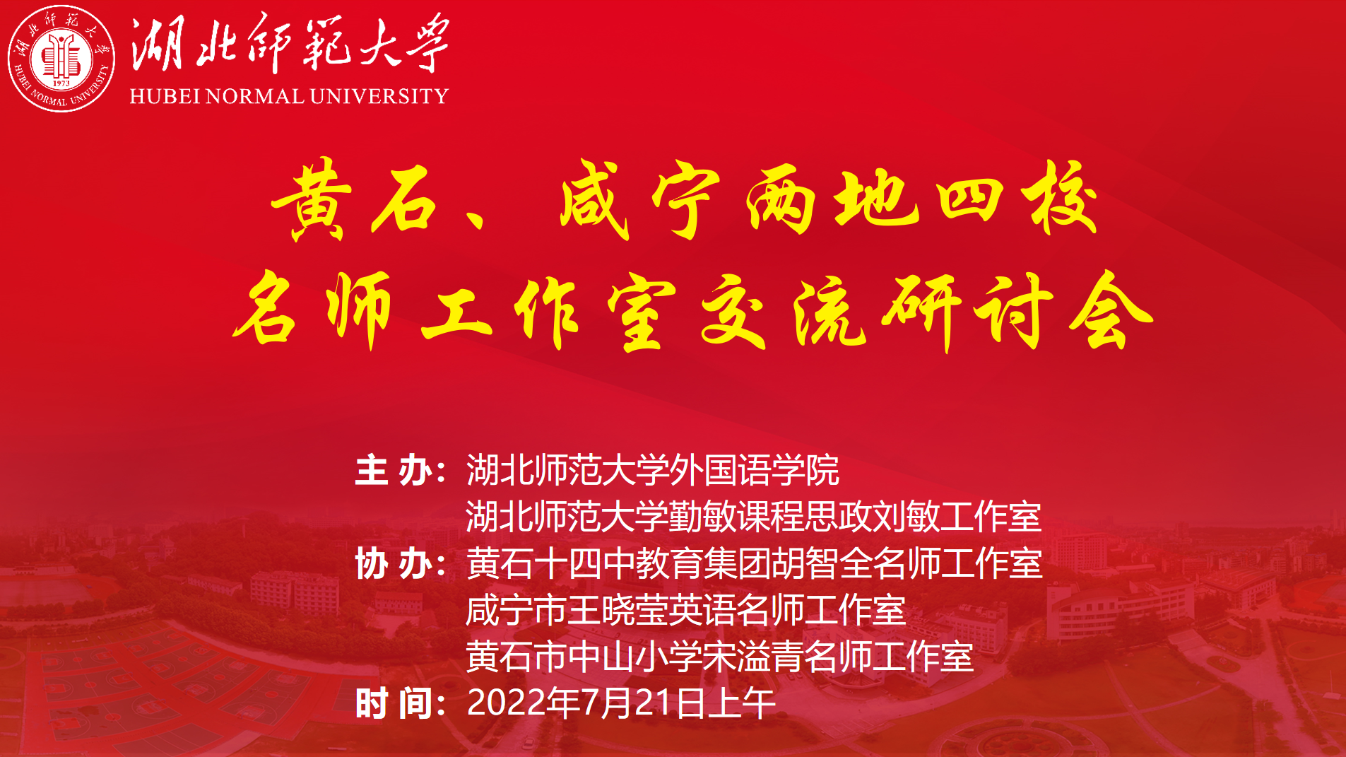 2022年7月21日上午,为深化高校与中小学合作共赢的“三位一体”协同培养机制,打造教师培养、培训、研究和服务一体化的合作共同体,实现高校名师工作室与基础教育中小学名师工作室的对接协作与深度交流,第一会所 在充分发挥国家级课程思政教学名师团队刘敏工作室“走出去”省内省外辐射示范作用的同时,将黄石、咸宁两地中小学英语名师工作室“请进来”,于人文楼21B602圆满举办“黄石、咸宁两地四校名师工作室交流研讨会”,旨在促进黄石、咸宁两地英语教育教学相互交流和同步发展,加强各名师工作室之间的合作学习与智慧共享。