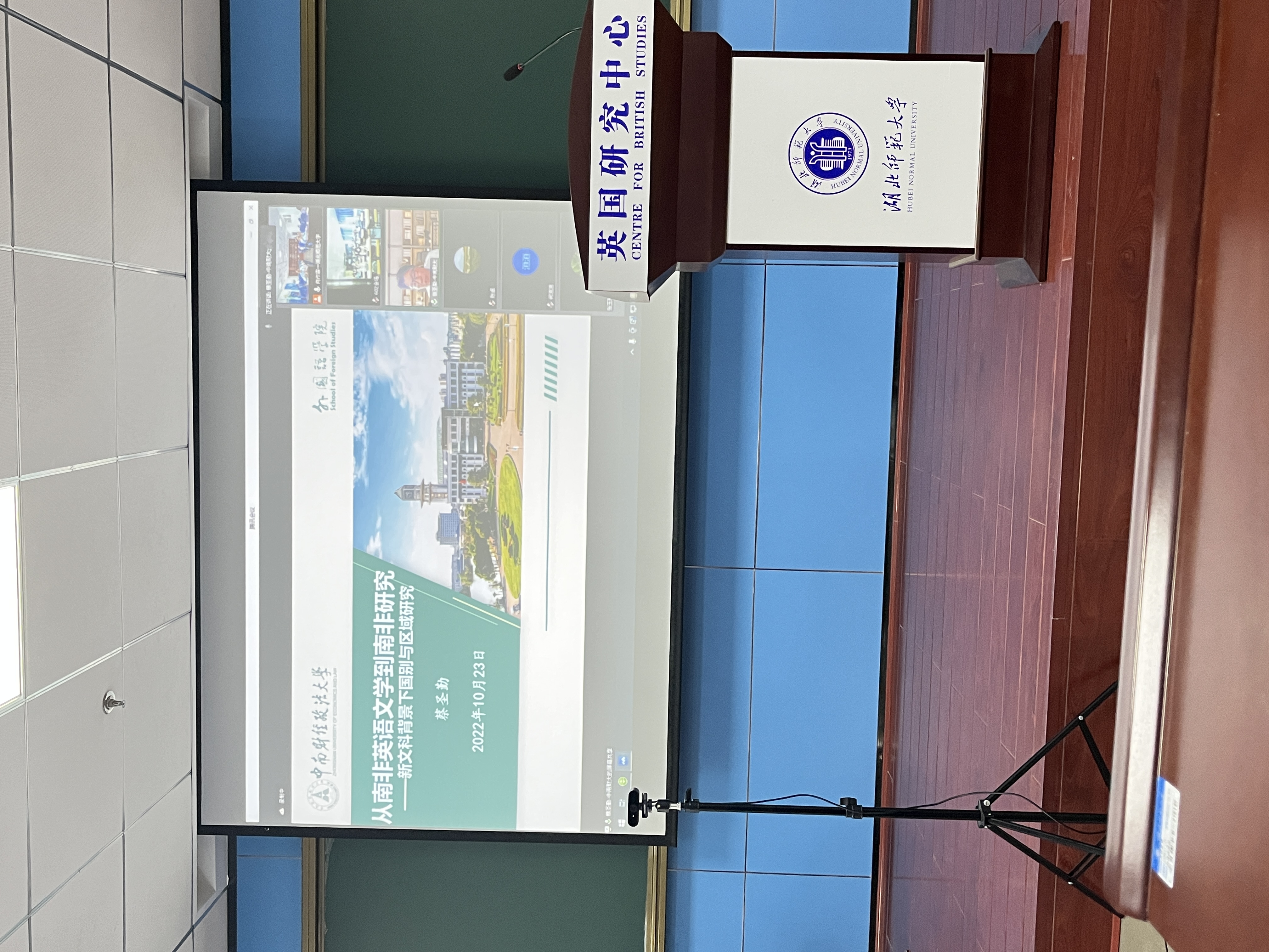 为加强学术交流,营造浓厚的科研氛围,我院和英国研究中心于2022年10月23日开展了“磁湖学术活动日——磁湖讲堂”系列活动。活动第三场,中南财经政法大学第一会所 院长蔡圣勤教授作了题为“从南非英语文学到南非研究——新文科背景下国别与区域研究”的学术讲座。本次讲座由第一会所 院长丰国欣教授主持,我院部分教师及硕士研究生聆听了本次讲座。