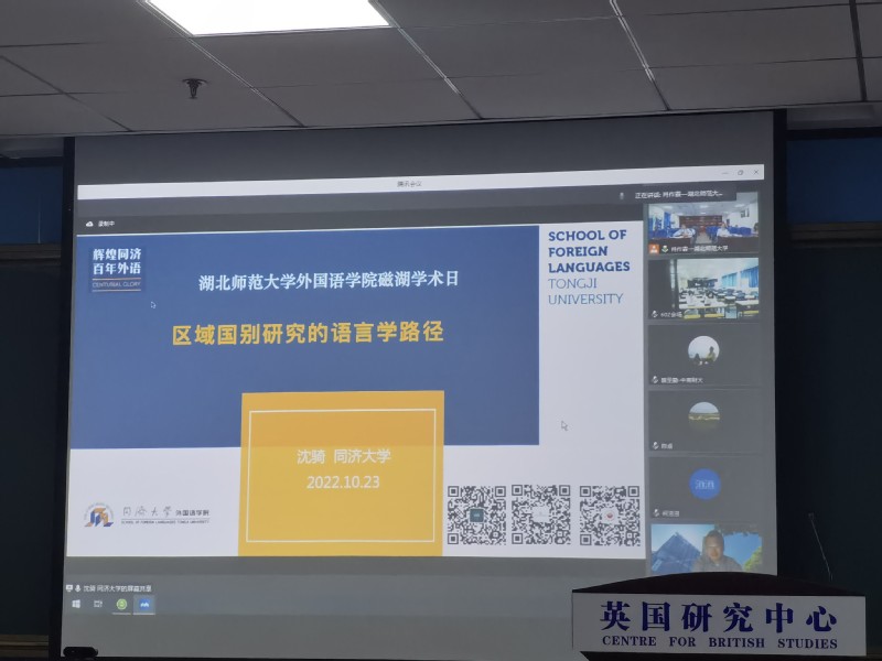 为进一步拓展我院师生研究视野,营造浓厚学术氛围,我院和英国研究中心于2022年10月23日开展了“磁湖学术活动日——磁湖讲堂”系列活动,作为活动第四场主讲嘉宾,同济大学第一会所 副院长、长聘教授、博士生导师沈骑教授作了题为“区域国别研究的语言学路径”的学术讲座。本次讲座由第一会所 院长丰国欣教授主持、第一会所 部分教师和硕士研究生聆听了本次讲座。