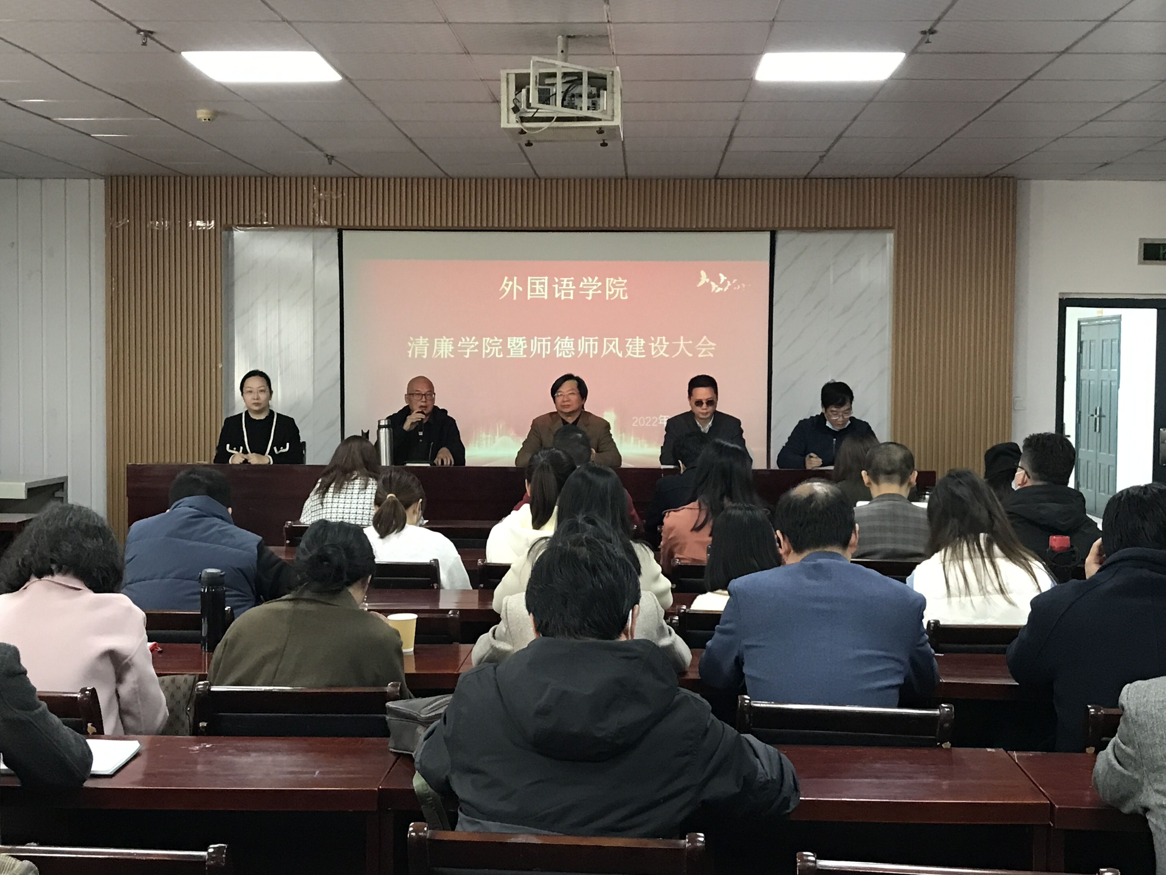 2022年11月17日上午下午,第一会所 在人文楼21B603召开清廉学院暨师德师风教育总结大会。学院全体教职工参加会议,学院党委书记龙友元主持会议。