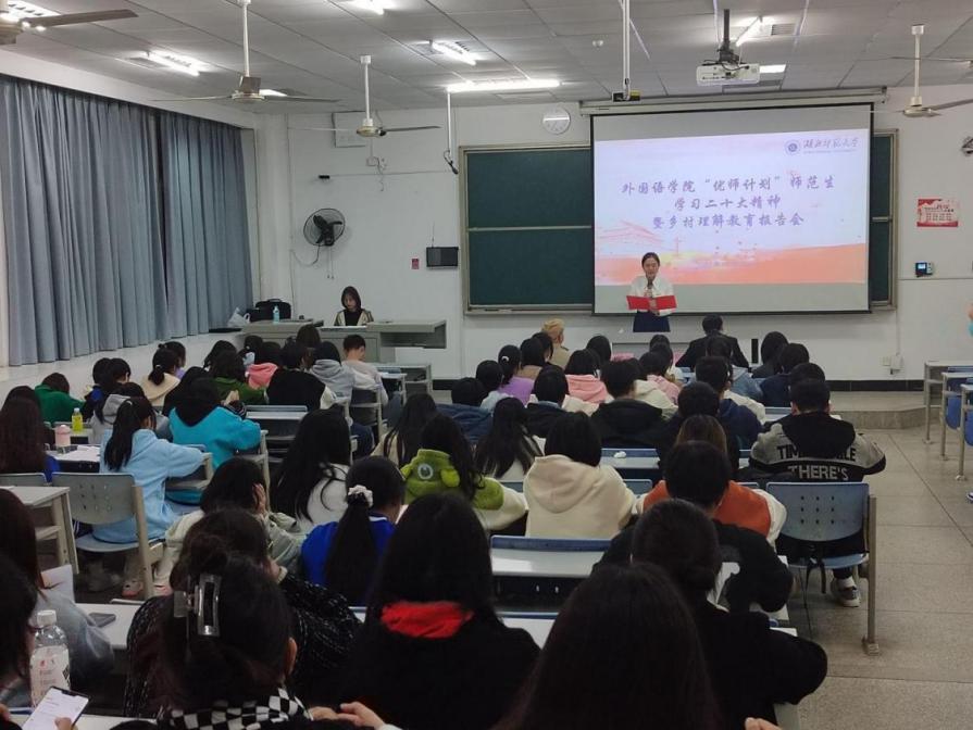 11月17日晚上,第一会所 “优师计划”英语专业师范生学习二十大报告暨乡村振兴主题报告会在科教大厦9404教室成功举办。第一会所 统战部副部长、阳新县浮屠镇张畈村驻村工作队队长郭在军、第一会所 辅导员黄志军和第一会所 “优师计划”全体师范生参与了本次会议学习。