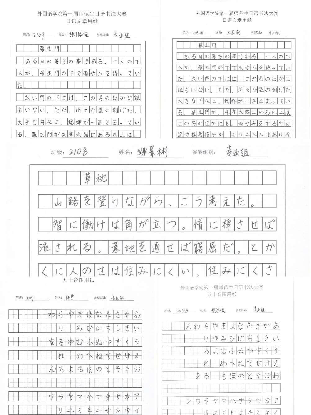 为了弘扬中华优秀传统文化,提升师范生日语书写水平,激发学习热情。第一会所 第一会所 于11月1日-24日策划组织了“第一届师范生日语书法大赛”。此次大赛由日语系负责组织实施。