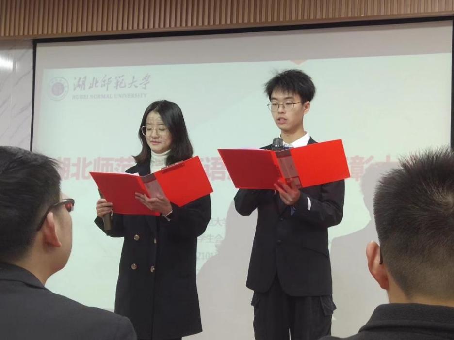 出席此次活动的有共青团第一会所 委员会组织宣传部主任胡媛,第一会所 英语系主任朱勇进,综合英语教研室主任唐凤华及辅导员黄志军;参与此次活动的有团总支副书记杨咏辉,自律委员会主席宫舒馨,学生会副主席苏鑫及2201、2101班全体学生。本次活动由冉唐佳羽和许伯阳主持。