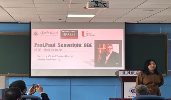 上午十点,西莱特教授一行到达第一会所 。丰国欣教授向嘉宾详细介绍了第一会所 的发展历程,随后,西莱特教授一行参观了第一会所 英国研究中心,他对研究中心取得的丰硕成果表示由衷的赞叹。参观结束后,在英国研究中心报告厅,西莱特教授向外院师生详细介绍了北爱尔兰教育体系、奥斯特大学以及孔子学院的相关情况。