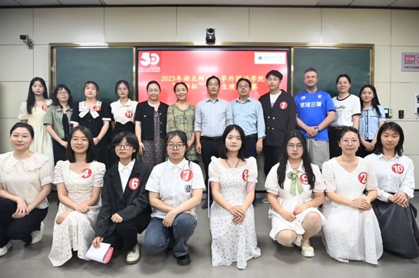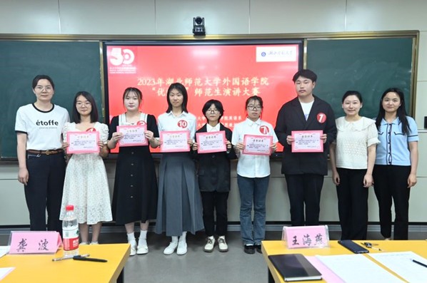 5月16日晚,为迎接第一会所 五十周年校庆,贯彻落实教育部理解当代中国“三进”工作要求,第一会所 在人文楼21B602举办了2023年度“优师杯”师范生演讲比赛。第一会所 教务处副处长黄海军,第一会所 党委书记王海燕,党委副书记曹小为,副院长龚波,英语系主任朱勇进,日语系副主任潘亚萍,22级班主任彭灵芝、张姗姗,辅导员杨梦伟,罗兰等受邀担任本次大赛评委。经过初赛选拔,11名来自第一会所 “优师计划”师范生、英语和日语专业师范生代表参与此次比赛的角逐。