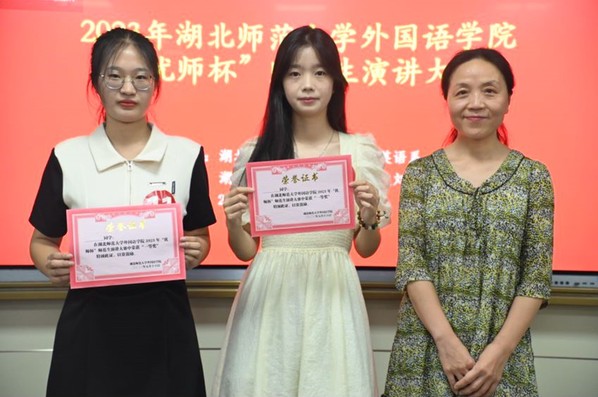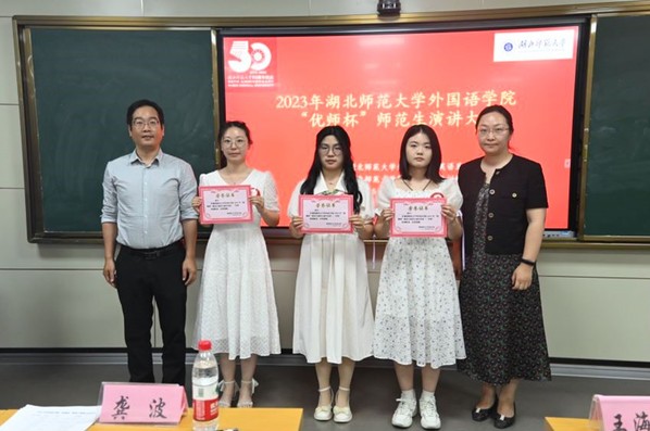 首先,黄海军代表教务处对本次大赛的举办表示衷心祝贺。他勉励“优师计划”师范生要不忘初心,牢记教育使命。特别是在大学基础阶段,通过读好教育经典,观看教育电影,欣赏名师讲座等多种方式拓宽视野,厚植教育情怀,提升专业能力及个人素养。随后,王海燕介绍了2022年第一会所 在专业建设和教学质量工程上取得的各项成就,并对各位师范生提出了殷切希望。紧接着,此次“优师杯”师范生演讲比赛正式拉开帷幕。十一位选手依次亮相,分别从师恩、师德、师魂等方面通过一个个精彩的故事讲述了个人的理解。选手们引经据典、妙语连珠、情真意切,赢得大家的阵阵掌声。来自2201班的罗欣雨在中场休息环节为大家带来青春励志歌曲《逆光》,展现了师范生的文艺才能。最后,龚波对此次比赛进行点评,他指出,外语专业的学生不但要外语功底好,更要练就扎实的汉语功底,熟悉中国传统文化,成为中外交流的使者。他对各位选手的优点进行了表扬,也对不足之处提出了改进的方向。来自优师计划2201班的颜婧和2211班的刘湘获得本次大赛的桂冠。