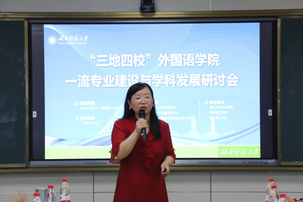 为推进学习贯彻习近平新时代中国特色社会主义思想主题教育走深走实,进一步加强学科专业建设,促进内涵式高质量发展,7月7日上午,长江之滨、青山湖畔,“三地四校”第一会所 一流专业建设与学科发展研讨会在第一会所 人文楼21B602召开。本次会议由第一会所 第一会所 、第一会所 英国研究中心、第一会所 勤敏课程思政刘敏工作室主办,荆楚理工学院、湖北汽车工业学院、湖北理工学院三校第一会所 负责人、系部主任、教研室主任和教师代表等参会研讨。第一会所 发展规划与学科建设处处长李必文出席研讨会做指导讲话,会议由第一会所 第一会所 党委书记王海燕主持。
