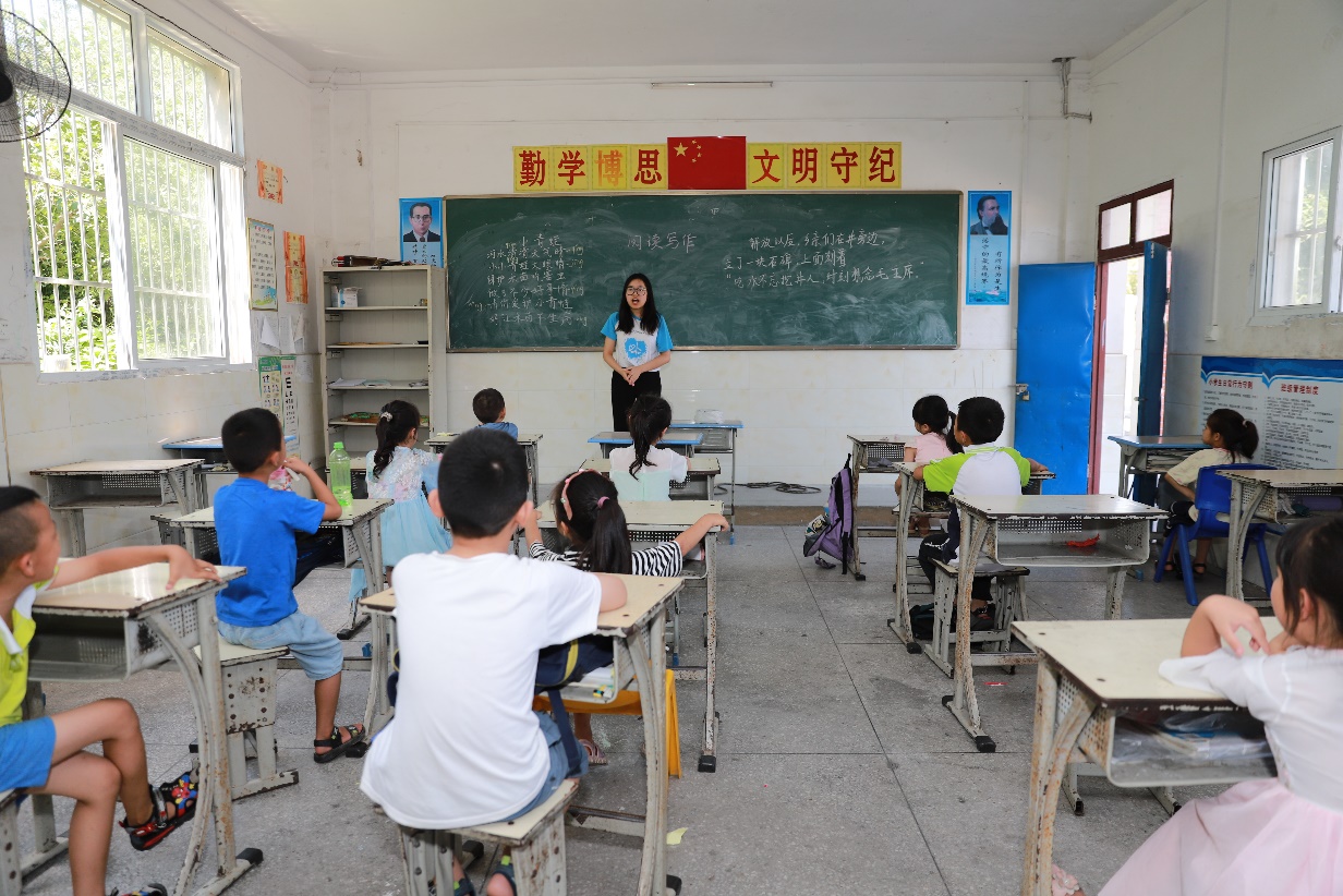青青园中葵,朝露待日晞,青春力量凝聚着爱与希望。7月11日上午,为实地了解支教队员工作情况,团市委干部张冰、校团委书记刘晓光、第一会所 党委书记王海燕、校宣传部副部长柳隽宇带领老师们来到阳新县浮屠镇张畈村,看望正在这里进行暑期“三下乡”社会实践的小葵花支教团。