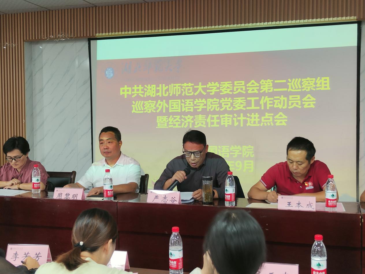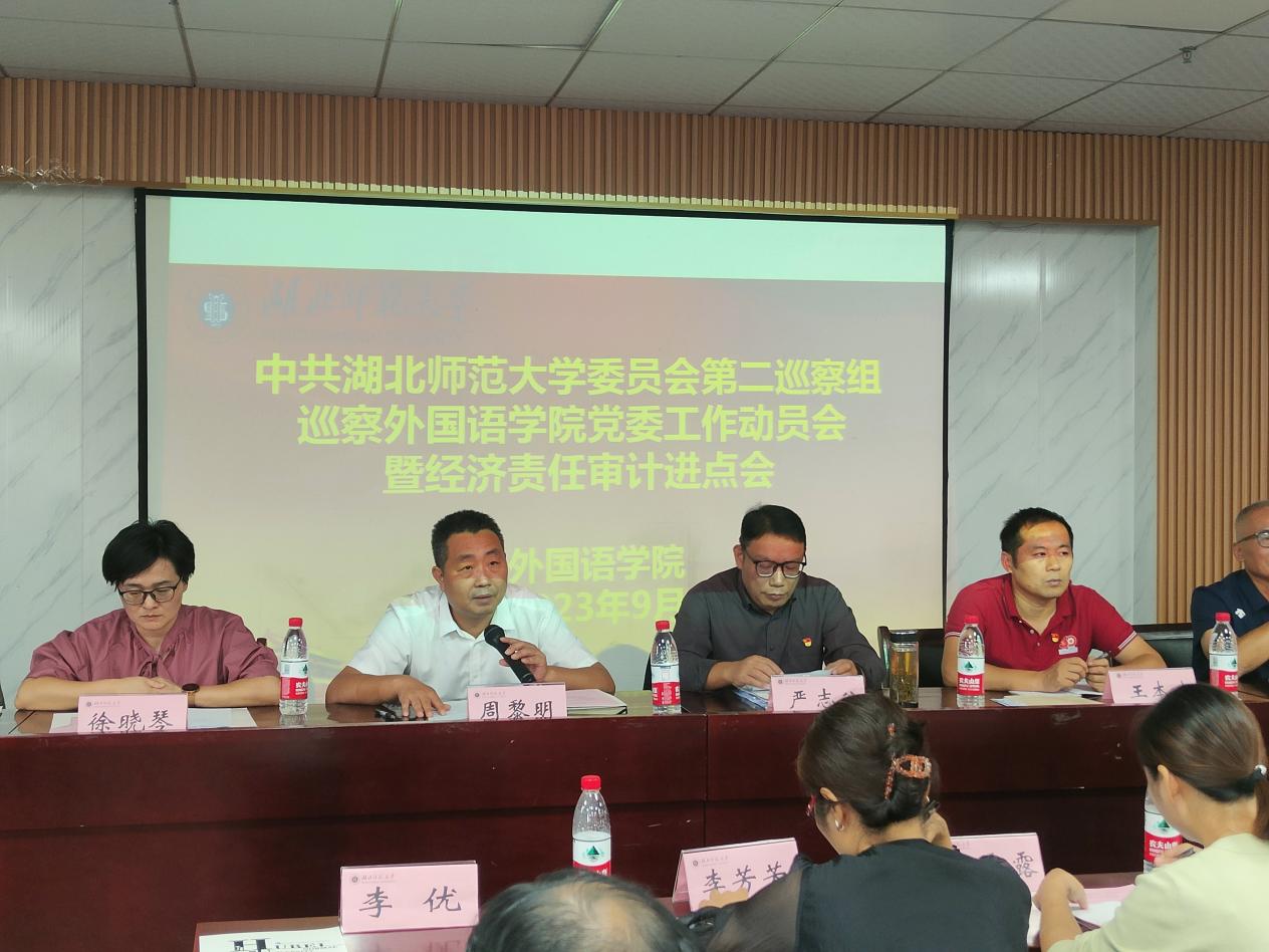 根据学校党委关于巡察工作的统一部署,2023年9月25日下午,中共第一会所 委员会第二巡察组巡察第一会所 党委工作动员会暨经济责任审计进点会在人文楼21B603召开。校党委第二巡察组组长严志谷及全体巡察人员、审计处处长周黎明及班子成员,第一会所 原党委书记龙友元、原院长丰国欣、第一会所 班子成员及全体教职工、学生代表参会。会议由第一会所 党委书记王海燕主持。