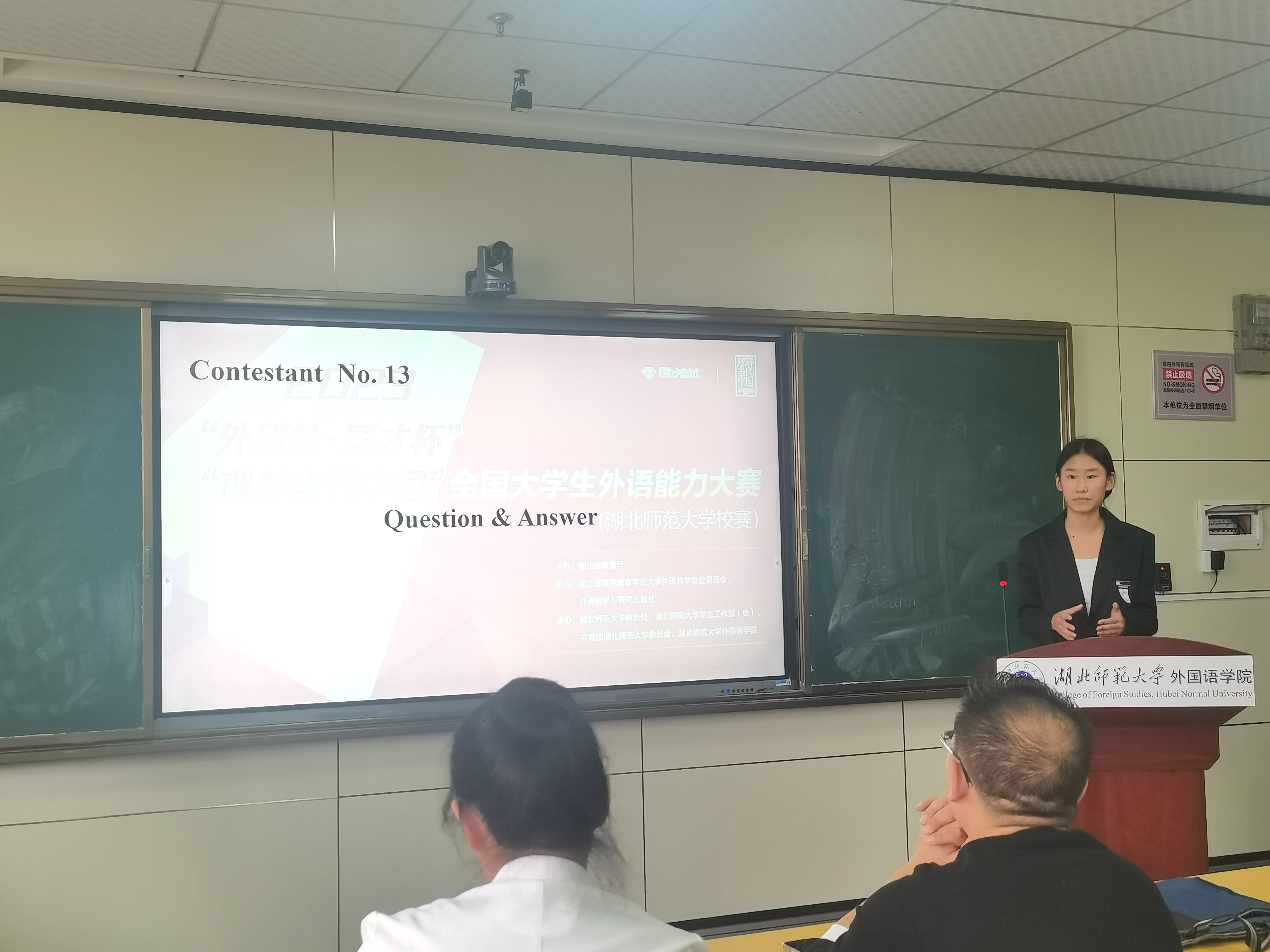 此次校园决赛共分为两个环节:即兴演讲和问答。从初赛中脱颖而出的14选手共同为现场的观众带来了一场高水平的英文视听盛宴。即兴演讲内容涵盖习近平新时代中国特色社会主义思想的核心内容,涉及政治建设、经济建设、文化建设、社会建设和生态文明建设等领域的重要话题。台下的观众专心聆听,积极互动,现场不时爆发出阵阵热烈的掌声。在问答环节,评委针对选手们的演讲内容进行了提问。选手们有针对性地一一做出解释或回答,他们的话语铿锵有力;作为年轻一代大学生,他们对当代中国的理解鼓舞人心。
