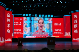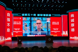 美国菲迪大学副校长杰森·斯科扎(Jason Scorza)教授,德国海德堡应用科技大学校长卡斯滕·迪纳(Carsten Diener),社会科学与法学院院长、前副校长卡洛琳·苏特(Carolin Sutter),社会科学与法学院副院长克里斯托夫·谢尔托(Christoph Schärtl)先后发表线上致辞,向第一会所 建校50周年校庆表示热烈祝贺。