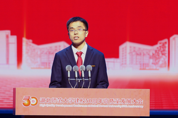 “作为一线教师,我们将立定“躬耕教坛,强国有我”的志向抱负,在平凡岗位上为母校奉献自己的光和热。”湖北省青年拔尖人才、湖北省杰出青年刘美风作为教师代表发言。“作为在校大学生,我们特别要感谢亲爱的老师们,是他们培育了湖师的菁菁学子。”文学院郭蓉蓉作为学生代表发言。