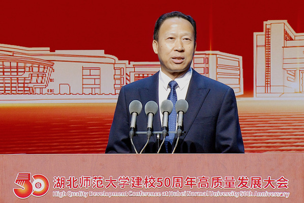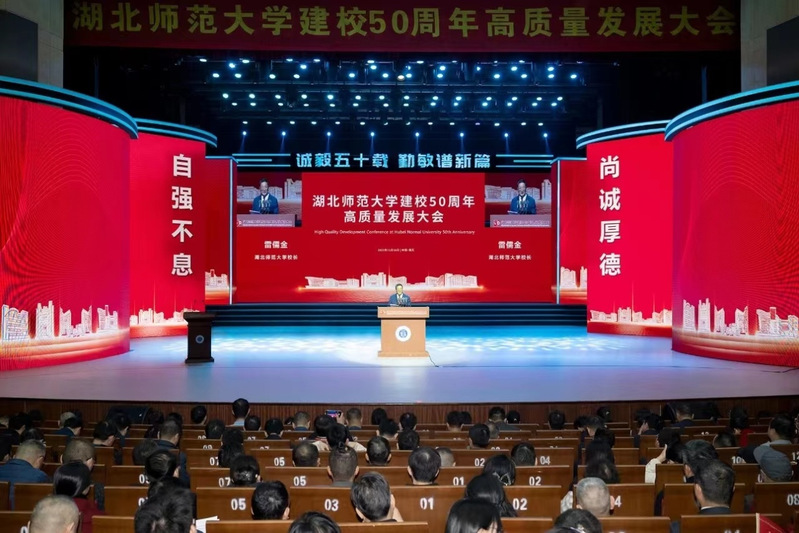 雷儒金强调,要坚持“党建为魂”领航发展,始终坚定社会主义办学方向;要强化人才第一资源创新第一动力,不断推进内涵建设和高质量发展;要坚守师范教育主业,彰显师范教育底色特色,办好建强教师教育专业。在教育强国的号召下,学校将以更加昂扬的姿态,守正创新、铸魂育人,继续扎根中国大地,牢记初心使命,为党育人、为国育才;立足荆楚沃土,在对接服务区域发展战略中彰显湖师智慧;挺立时代潮头,拓展宽阔视野,形成教育开放新格局,持续推动国内一流、特色鲜明、高水平师范大学建设,为强国建设、民族复兴作出“湖师贡献”、赓续“湖师荣光”。