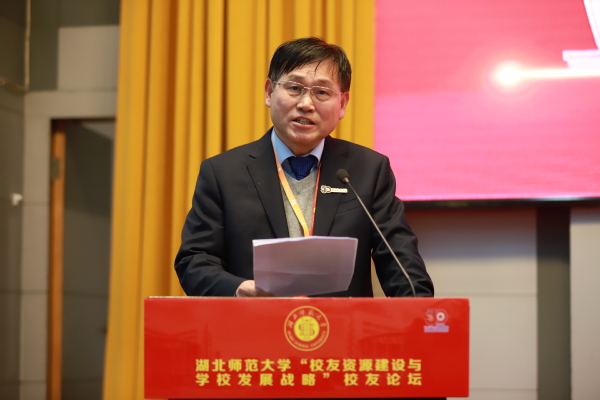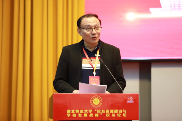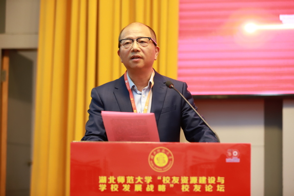 雷儒金在致辞中向出席本次论坛的校友、嘉宾表示诚挚的欢迎,向为母校做出卓越贡献的各校友组织、各位校友表示衷心的感谢。他指出,学校正处在重要的战略机遇期和发展转型期,学校党委、行政将一如既往地重视校友工作,不断加强校友工作的改革和探索,希望广大校友一如既往地关心、关注和帮助母校建设发展,积极建言献策,携手为母校在高水平师范大学建设新征程上凝聚磅礴力量。