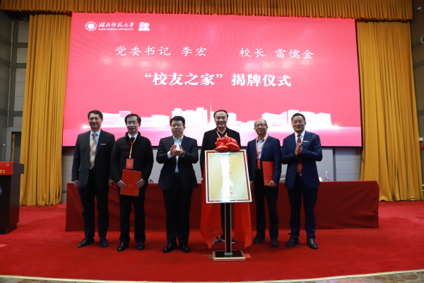 李宏、雷儒金为捐赠校友代表颁发捐赠证书,向校友感恩母校教育和培养、助力学校发展与建设的善举表示崇高的敬意和感谢。李宏、雷儒金、校友代表共同为“校友之家”揭牌。