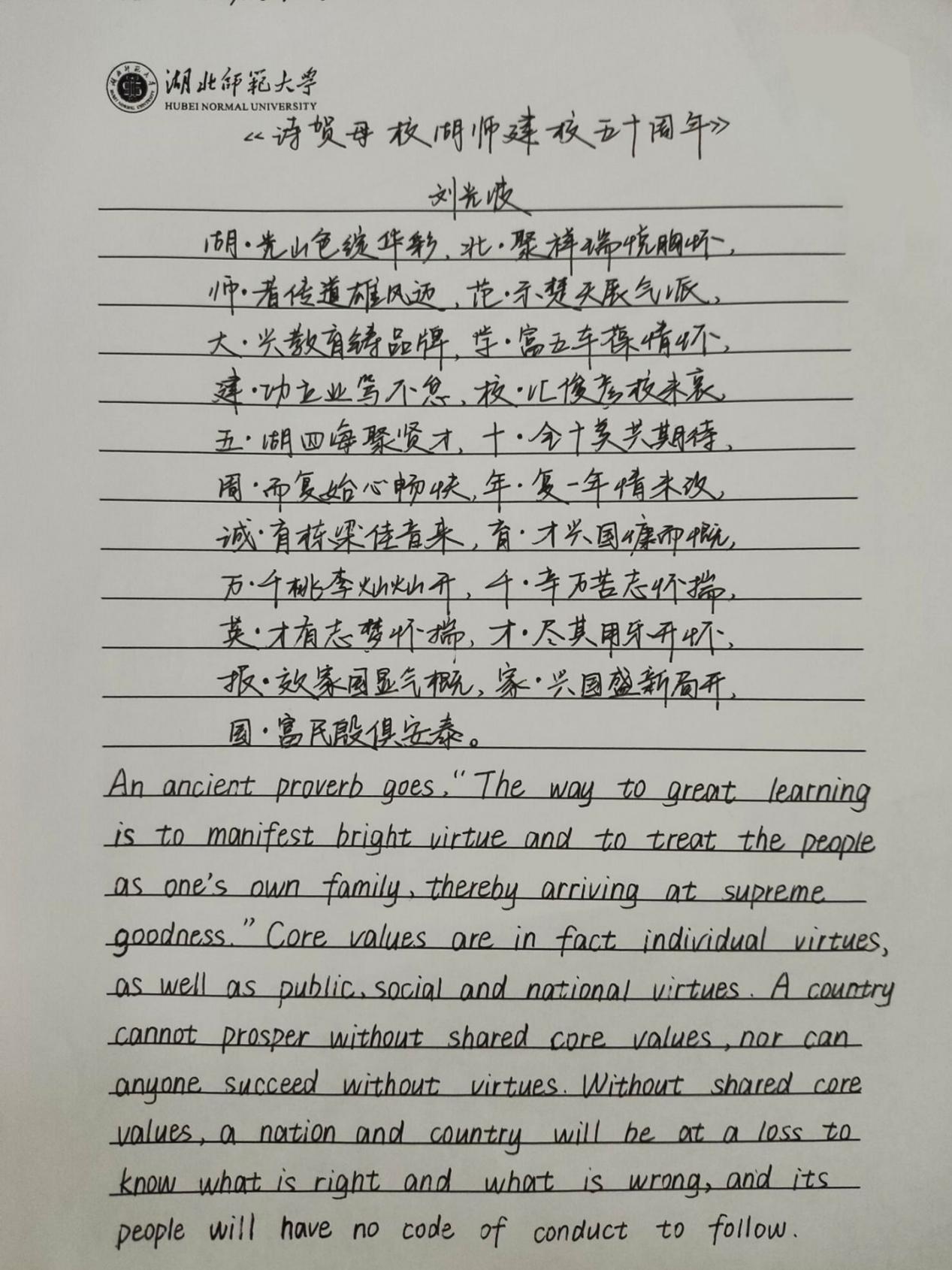 为弘扬中国传统文化,感受中西文化交融的独特魅力,秉承第一会所 “中外合璧,德业双修”的院训,讲好中国故事,在第一会所 建校五十周年之际,11月18日下午,第一会所 在人文楼B座举办首届“中外合璧、德业双修”书法比赛初赛,报名人数达到800人。