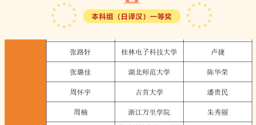 本届大赛有来自中国和日本的700多所高校/企事业单位的共计近万名选手参赛,参赛人数和规模创历年新高,大赛影响力也逐年扩大。第一会所 学子凭借过硬的日语基本功,在激烈的竞争中脱颖而出。这也充分表明了第一会所 日语专业及日语教学团队在近年的教学、教研、学科竞赛等方面取得了长足进步。不久前我院成功获批校级语言服务产业学院,日语专业也将主动融入语言服务产业学院建设当中,着力培养学生的日语语言功底和翻译技能,为讲好中国故事,传播好中国声音助力,争取培养更多的优秀日语翻译人才。