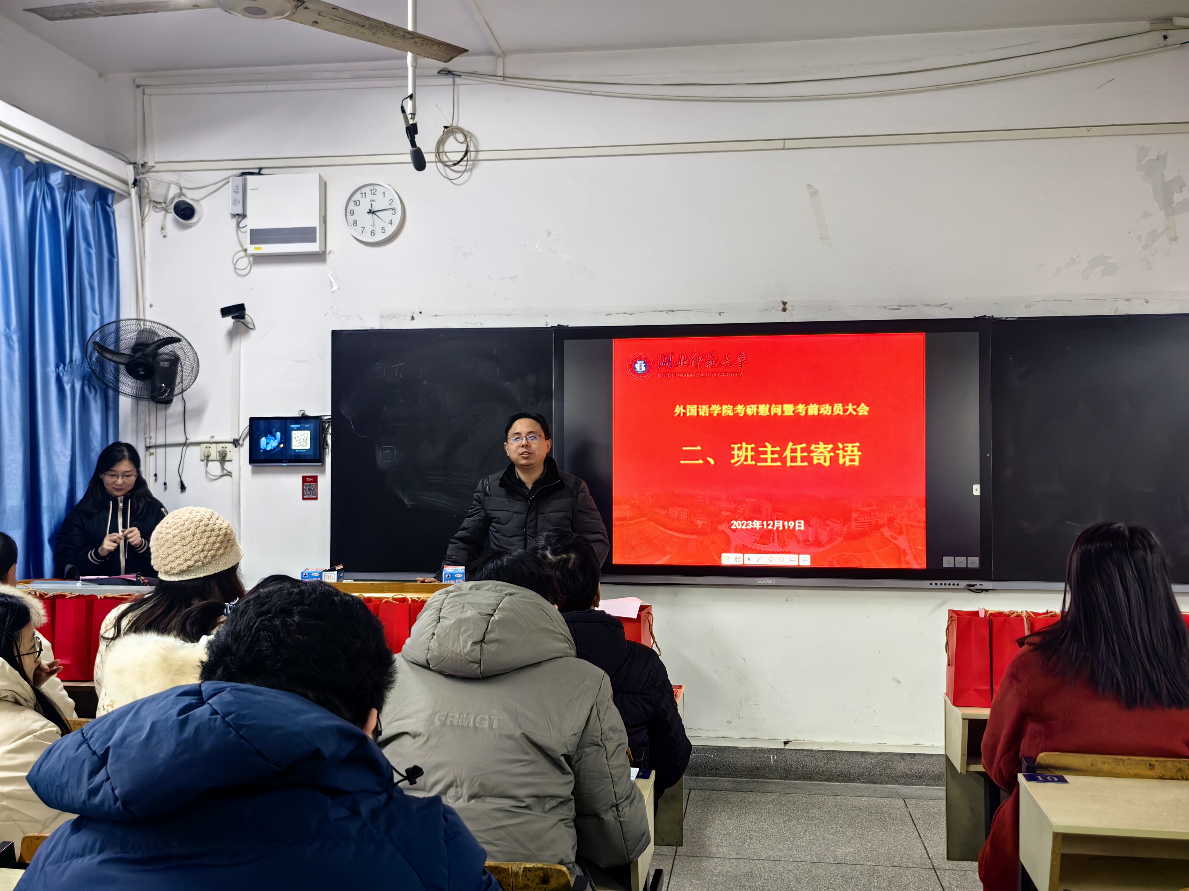 研究生考试即将来临,为更好地激励考研学子,第一会所 于12月19日下午4时在教育大楼1101教室召开考研慰问暨考前动员大会,为即将参加研究生考试的同学提供必要的指导和动力。此次大会由第一会所 党委副书记蔡惠芳主持。出席会议的有校学工部、人武部部长李洁、副部长胡红贵、第一会所 领导班子全体成员、辅导员、20级毕业班班主任以及2024届考研学生。