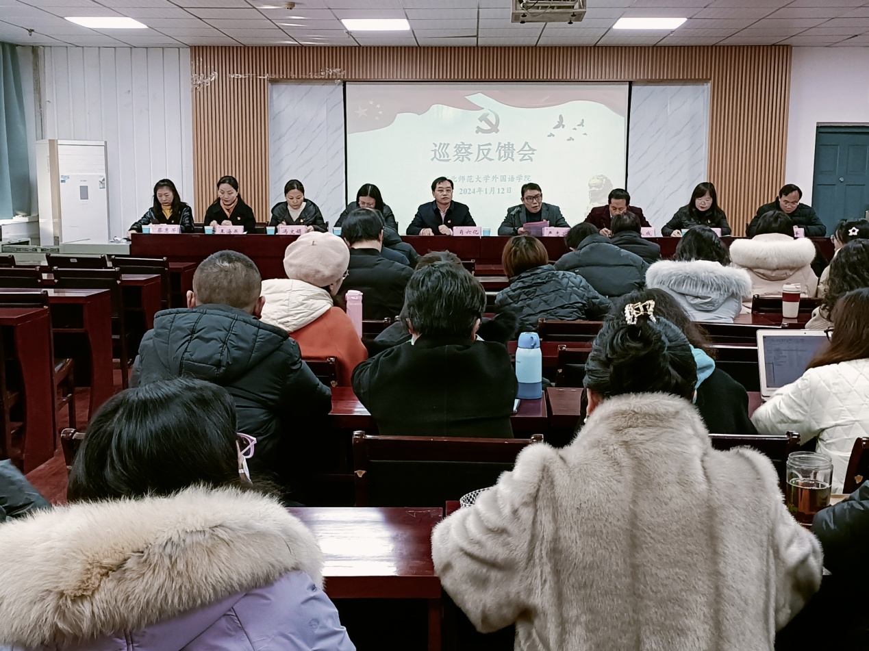 王海燕代表外国语党委作表态发言。她表示对于巡察组反馈的问题,学院党委完全认同并照单全收。学院党委将高度重视,提高政治站位,本着真对照,真反思,真整改,真负责的态度,切实把落实整改作为改进作风、推动工作、加快发展的实际行动,凝心聚力推动学院各项工作高质量发展。