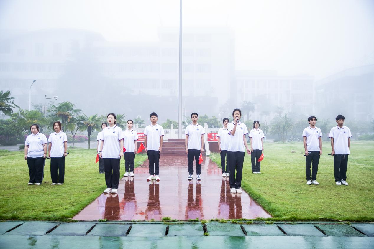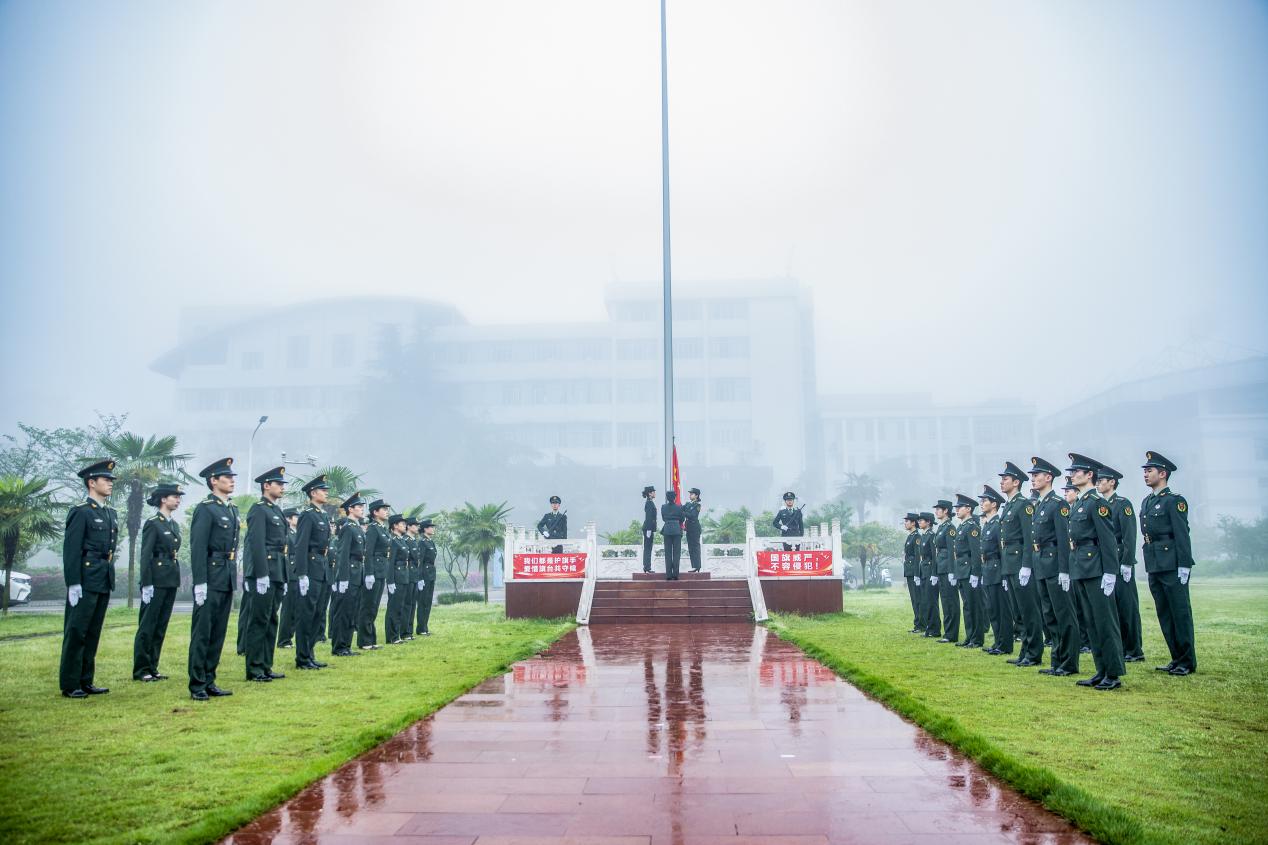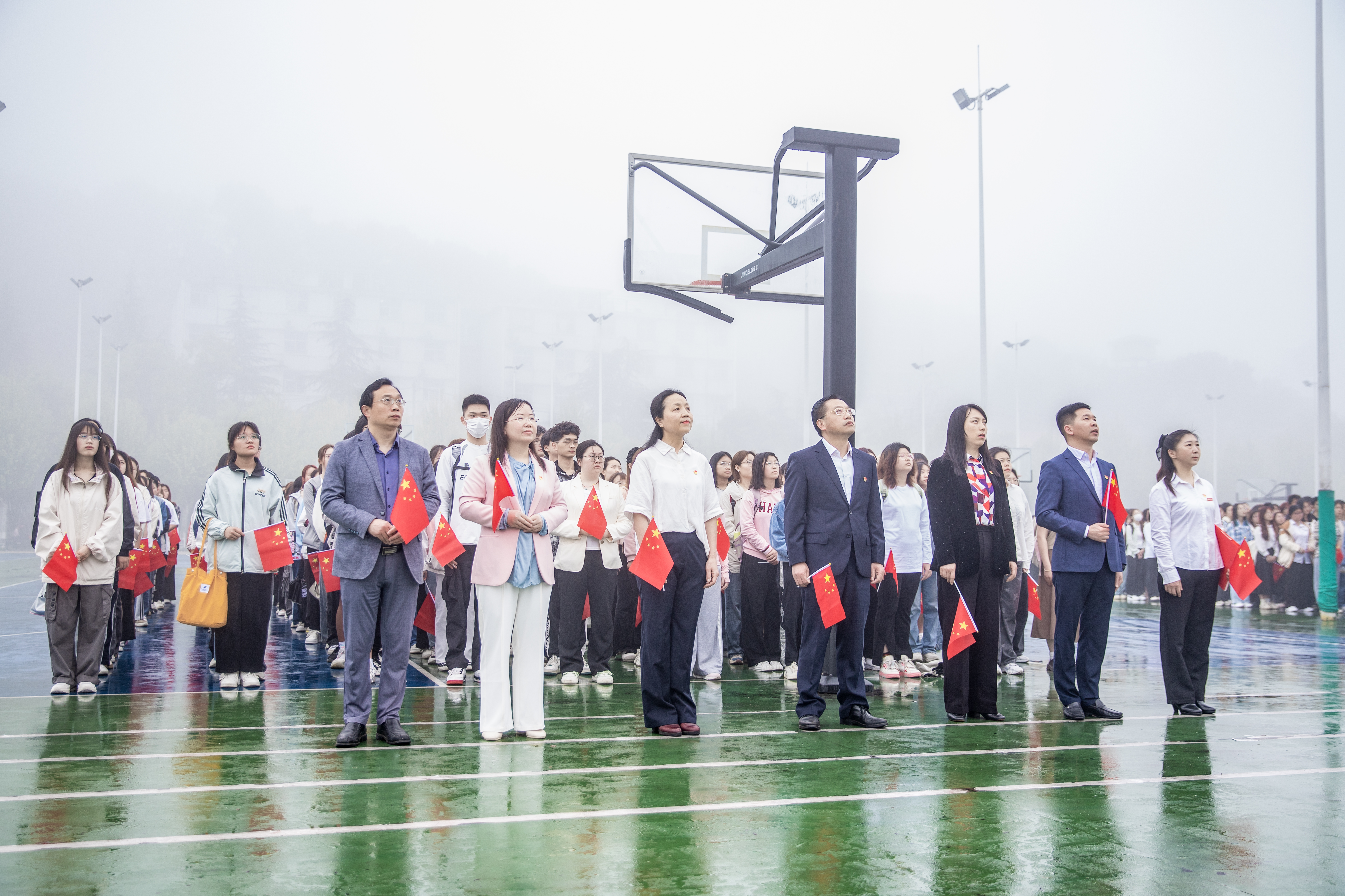 伴随着旭日东升,升旗仪式正式开始。校国旗班迈着铿锵有力的步伐护送国旗入场。激昂雄壮的国歌声中,五星红旗冉冉升起。