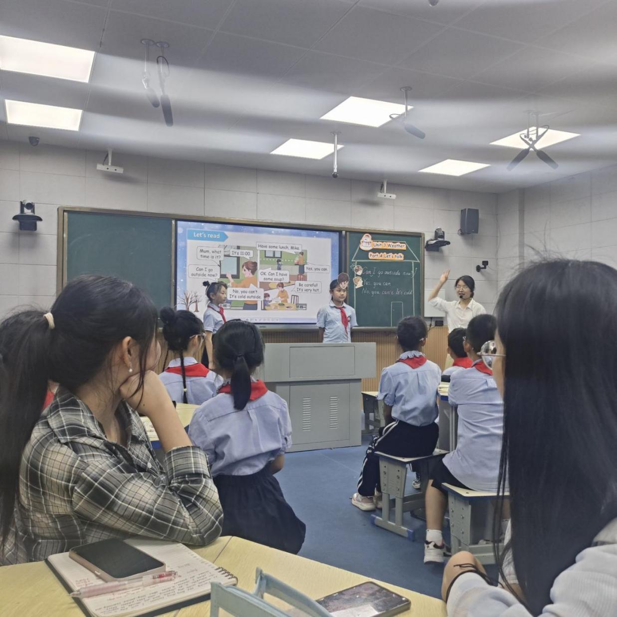 外院对此次见习做了明确的流程和内容上的安排。在前三次活动中,同学们分别观摩了三位老师的小学英语教学示范课,其中后两次为同课异构,课堂中老师生动的肢体语言、引导性的问题、近距离的沟通,让书本上的知识具象化,孩子们参与感十足,由此增加孩子们的学习兴趣。同学们在观摩中学到了更多的课堂实际经验,体会到了教师职业的崇高。除了示范课,同学们还听了宋老师的两节微讲座和一节来自华老师的经验分享课,宋老师围绕“英语教材的初认识”和“新手教师如何听课”两个主题分别进行讲述,同学们深受启发,写下了自己的见习感受并围绕不同话题进行交流分享。与此同时,同学们对中山小学的部分师生进行了访谈,了解师生的真实教学感受。他们还批改了小学生的作业,从中完成了一个由学生到老师角色的转换,实际体会教师职业的不易。除此之外,同学们还深入班级,对不同年级的小学生进行口语测试,在此过程中,同学们以第三视角发现了在小学英语教学中存在的困难和问题,他们在见习报告中指出并提出了相应解决方案,让此次见习活动变得更实际,意义更加深远。
