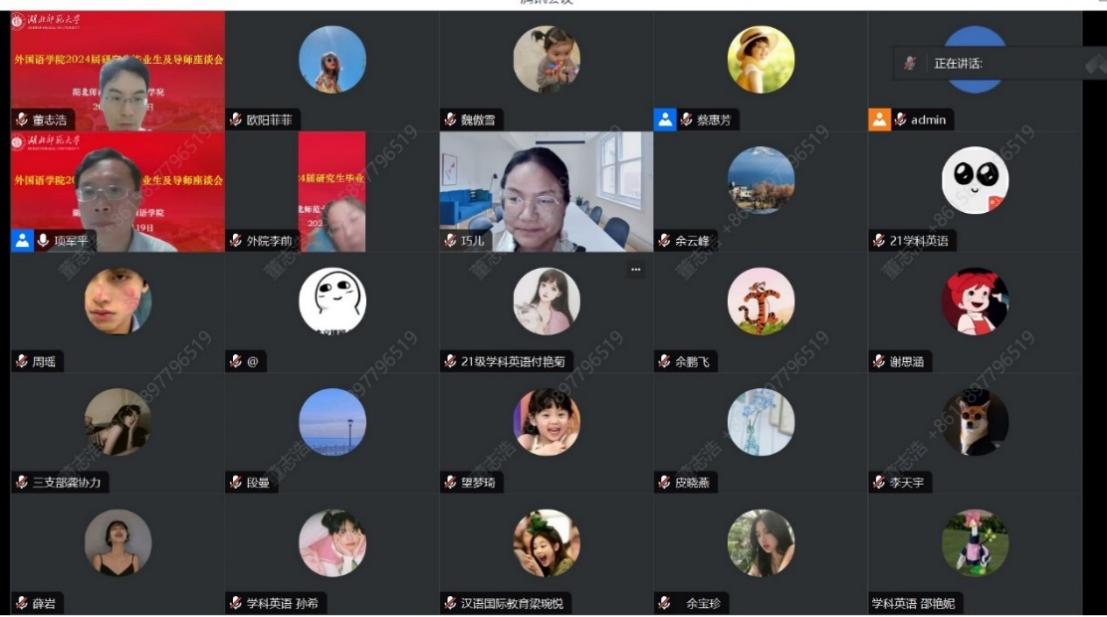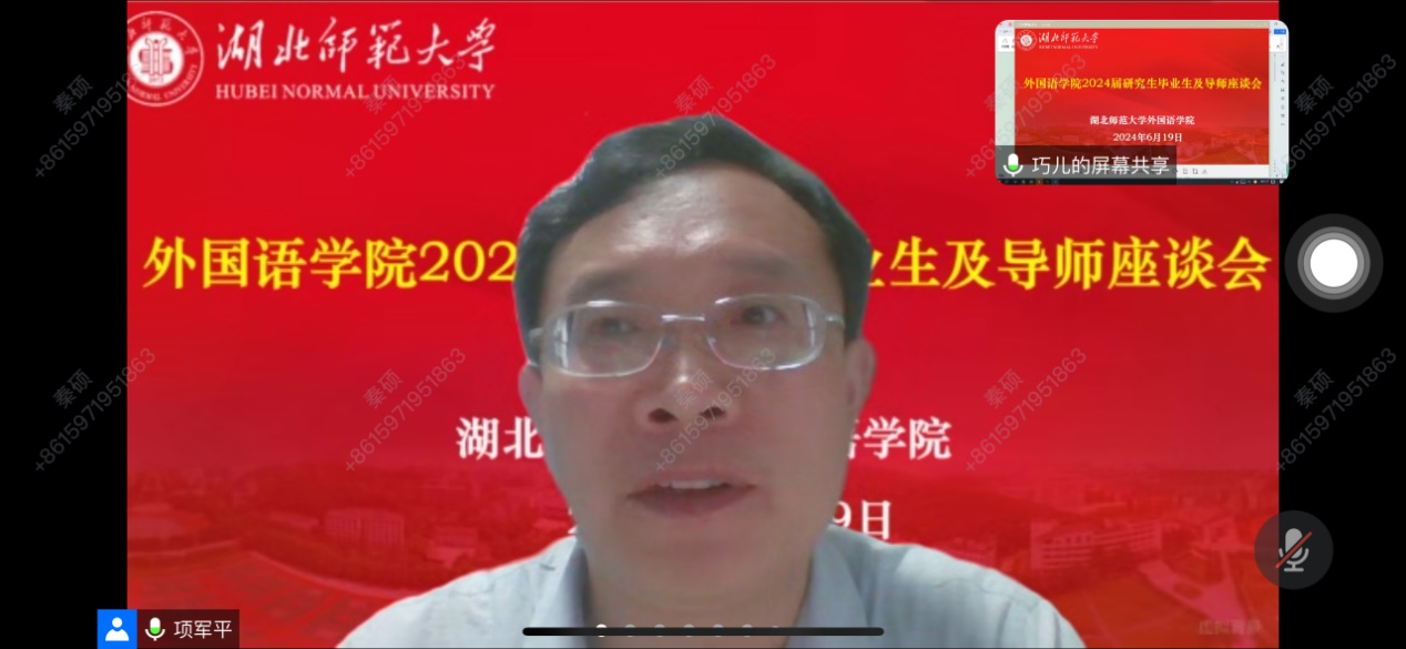为进一步提高研究生培养质量,扎实推进研究生就业工作,第一会所 于6月19日晚在腾讯会议成功举办了2024届硕士毕业生及导师座谈会。第一会所 党委副书记蔡惠芳、副院长项军平、研究生办公室主任董志浩、辅导员关巧、2024届全体硕士毕业生及导师参加座谈会。会议由项军平主持。