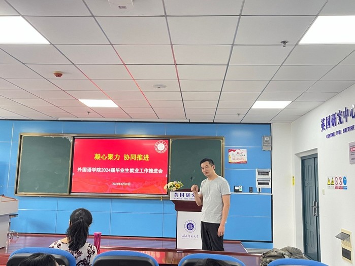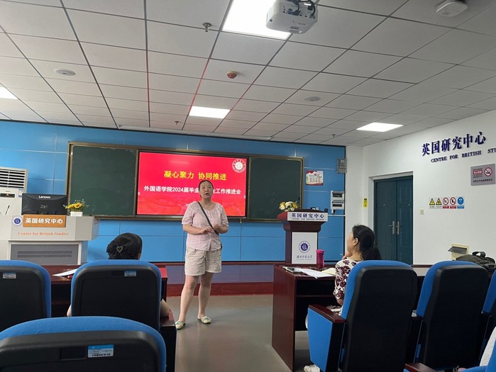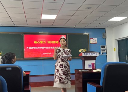 为全面贯彻落实党中央关于做好高校毕业生就业工作的决策部署,全力以赴促进2024届毕业生高质量充分就业,6月20日下午,我院于人文楼21B404召开2024届毕业生就业工作推进会。学院领导班子成员、各系部主任、毕业班班主任、辅导员参加本次会议,会议由外院党委副书记蔡惠芳主持。
