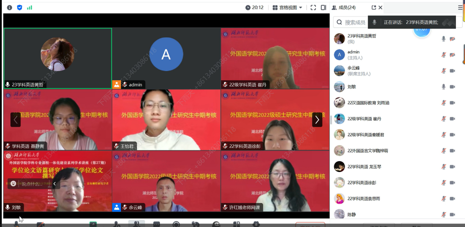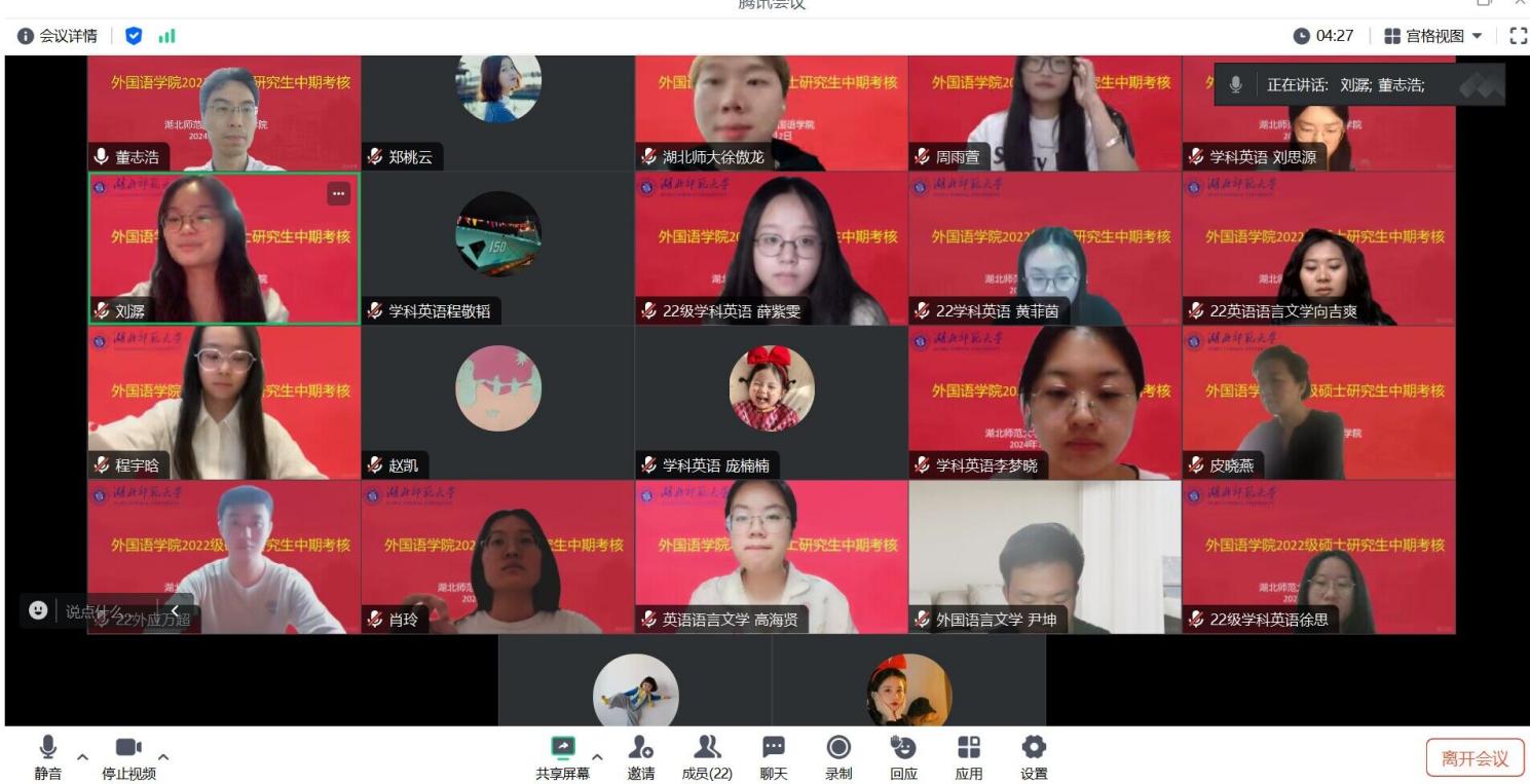 为进一步规范和加强研究生培养过程管理,督促研究生推进学业进度,提高研究生的培养质量和学位论文质量,第一会所 于2024年7月3日在腾讯会议开展了2022级硕士研究生的中期考核工作。