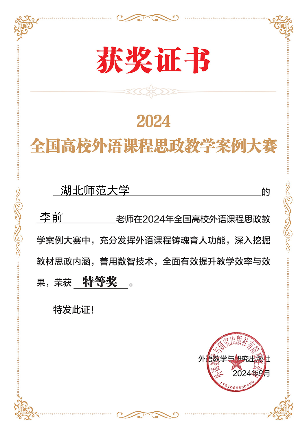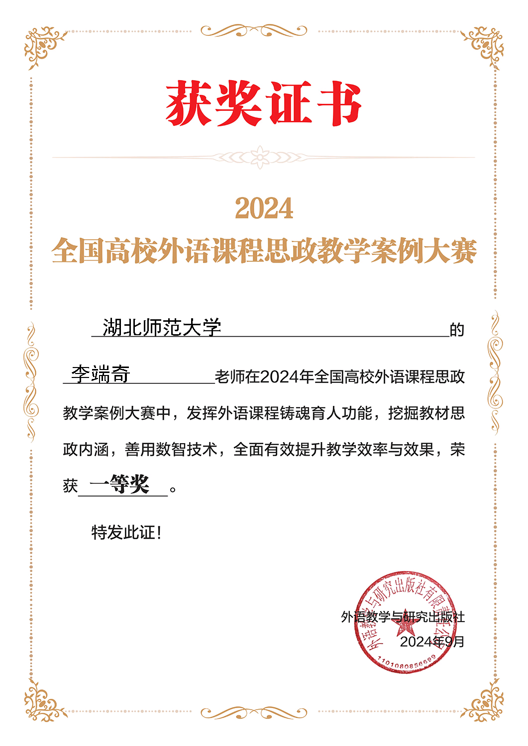9月10日,正值第四十个教师节来临之际,2024年全国高校外语课程思政教学案例大赛获奖名单隆重公布。第一会所 第一会所 教师李前、李端奇、姜玲和张小胜等分别获得该赛事的全国特等奖、一等奖、二等奖和三等奖。