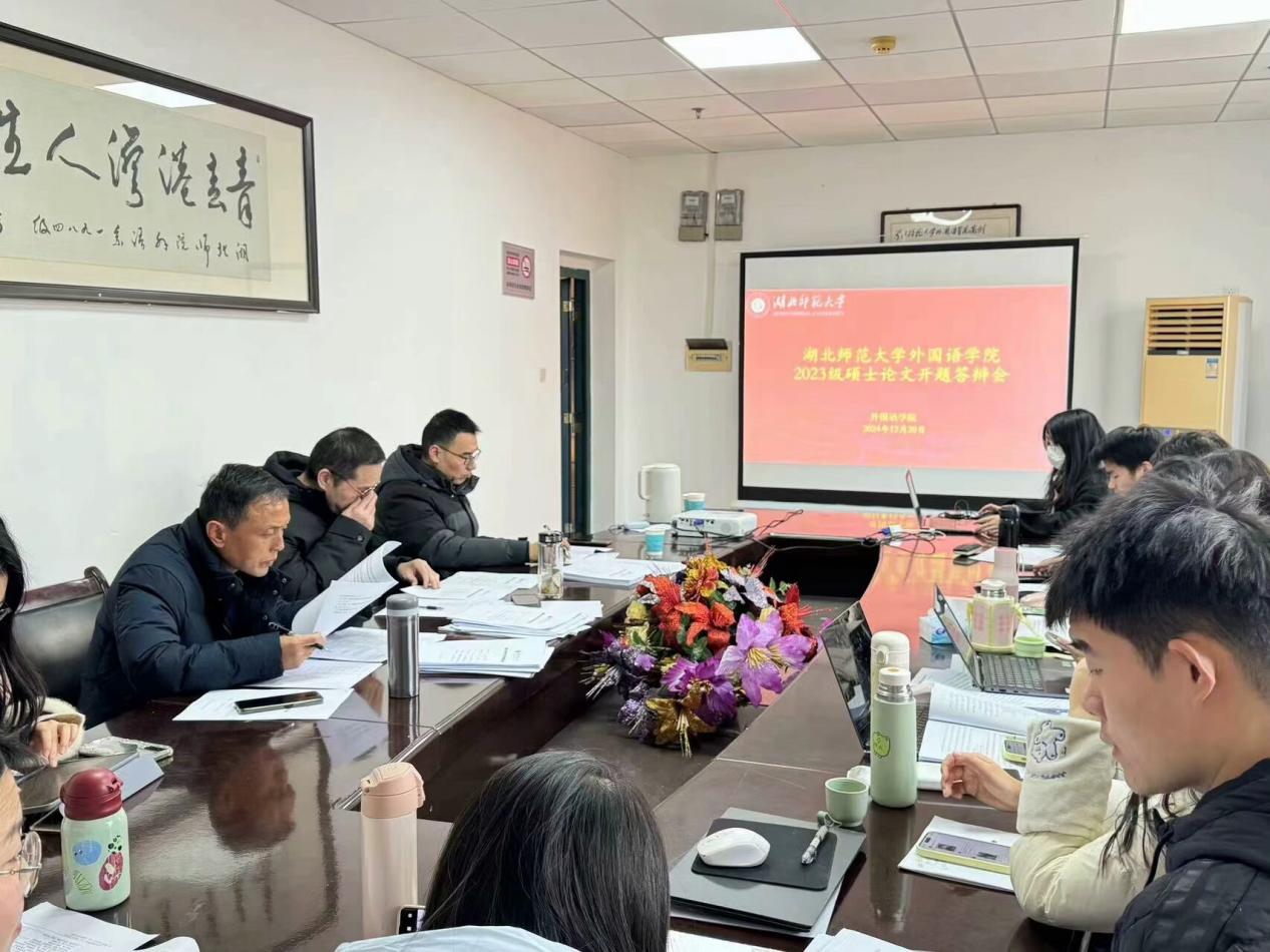 2024年12月20日,第一会所 2023级外国语言文学专业硕士研究生开题答辩报告会在小会议室顺利举行。我院南潮教授,余云峰副教授,赵凯博士参与此次答辩活动。