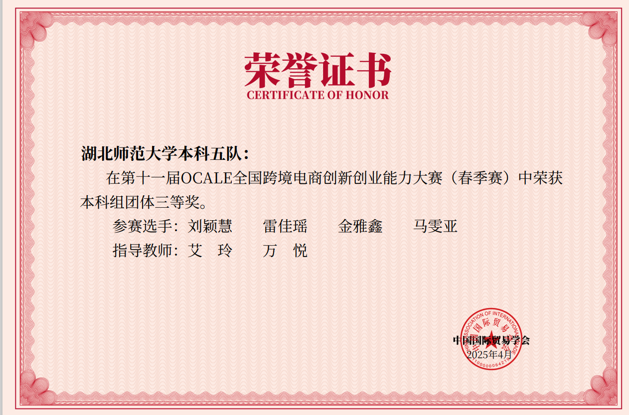 近日,我院商务英语、法语专业学子在第十一届OCALE全国跨境电商创新创业大赛(春季赛)斩获团体三等奖两项。参赛队员们凭借扎实的专业功底和默契协作,在全国赛场展现出新时代外院学子的创新风采。