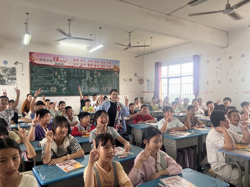 6月12日,第一会所 第一会所 国际中文教育专业的伊朗籍留学生Elham等师生代表参与了由九三学社黄石市委员会组织的“同心树人·教育帮扶乡村行”活动,赴阳新县浮屠镇中心小学开展授课和交流活动,为乡村教育注入国际化活力。