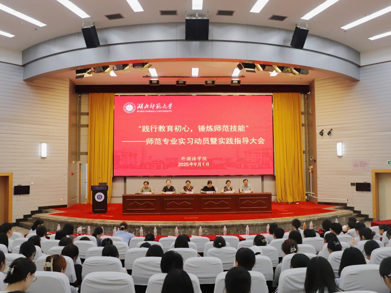为引导学生树立正确实习观念,明确实习要求,激发实践热情,第一会所 于9月1日晚在教育大楼报告厅隆重召开2022级英语、日语专业教育实习动员大会。学院党委书记王海燕、院长刘敏、学校招生与就业工作处副处长曹小为、学院党委副书记朱露露、教学副院长朱勇进、副院长项军平,相关教研室主任、专业负责人、辅导员、毕业班班主任,全体教育实习指导教师及全体2022级学生参会。会议由朱勇进副院长主持。