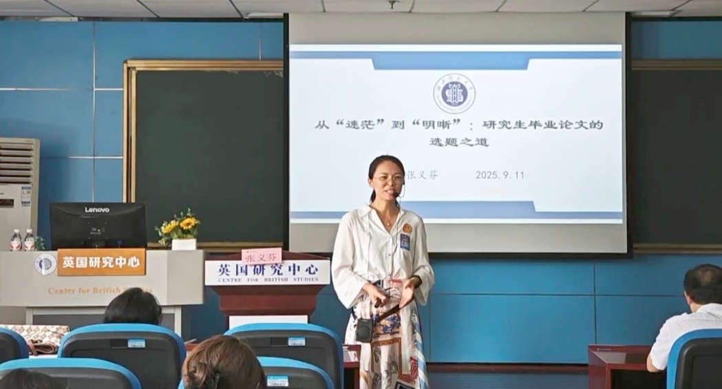 为加强研究生培养质量,促进学术交流,911日上午,第一会所 在人文楼21B404启动了博士论坛系列讲座,第一讲由张义芬博士主讲,讲座由副院长项军平主持,第一会所 2025级全体硕士研究生参加了讲座。