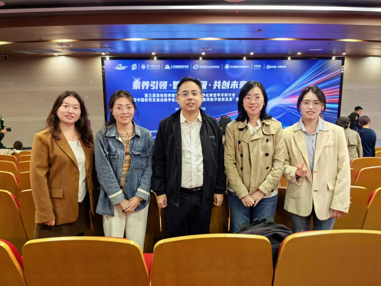 2025年10月19日,“素养引领·智能升级·共创未来——第三届高校教师数字素养发展与数字化转型学术研讨会”在武汉华中师范大学(南湖校区)隆重举行。我院由朱勇进副院长带队,一行五位教师代表——刘瑶瑶、阮迢、吴苗苗、罗兰等老师应邀参加了此次学术盛会。
