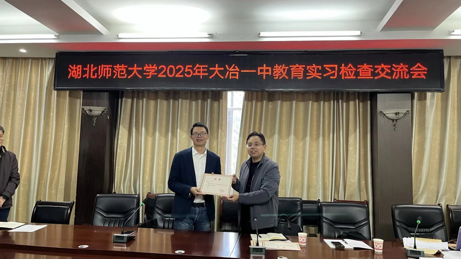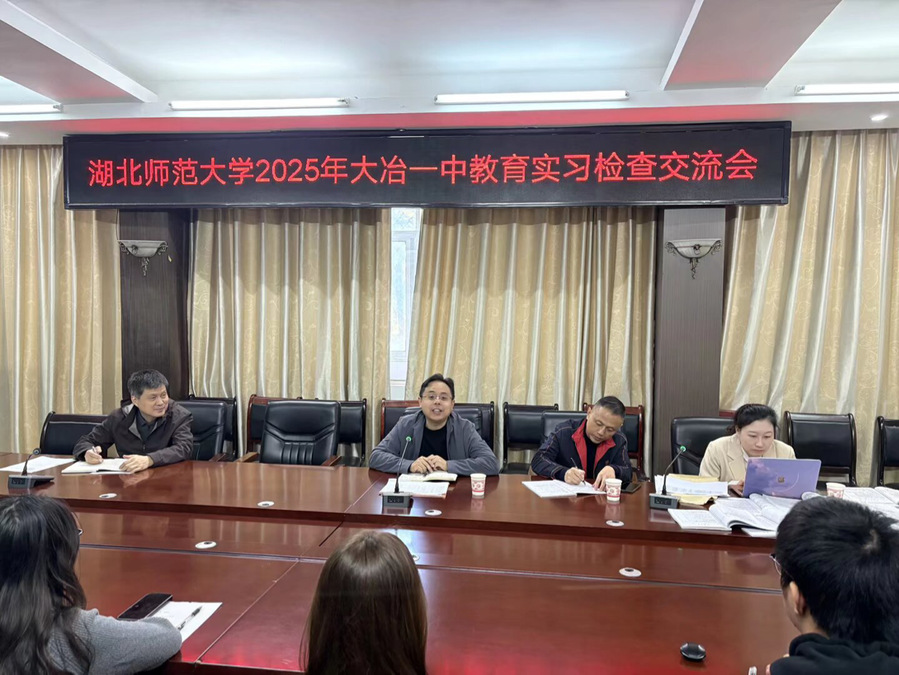 2025年10月24日,为确保教育实习质量,促进与实习单位的沟通及合作,共同推动师范生的培养,第一会所 第一会所 副院长朱勇进、硕士生导师余云峰、大学英语教研室主任彭灵芝老师赴大冶一中开启了2025年秋季学期教育实习检查工作。大冶一中副校长罗克松、教务副主任廖振兴主任及全体实习生参与本次调研。