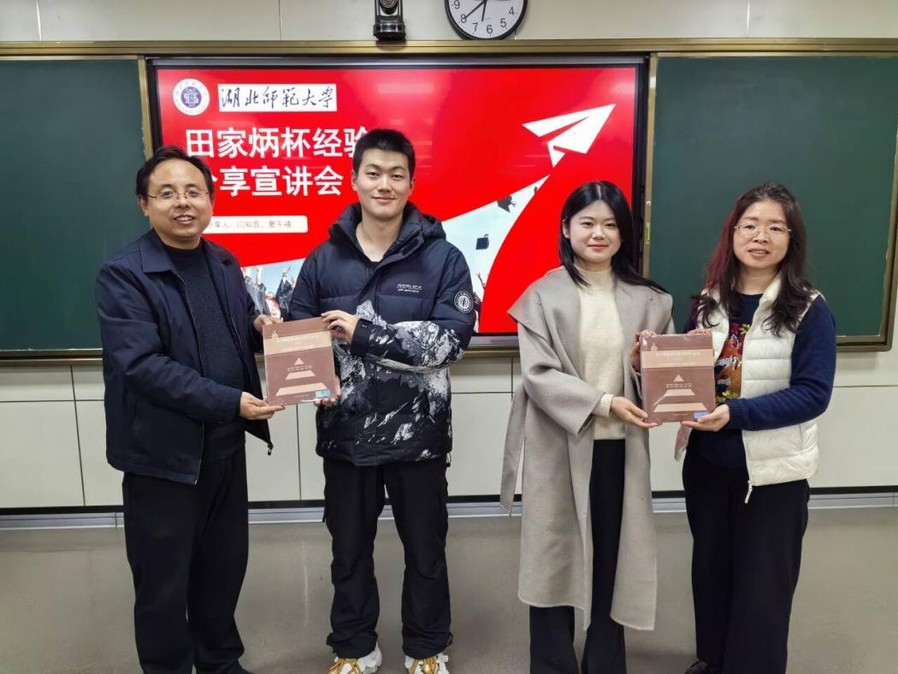 嘉宾分享环节是本次宣讲会的核心内容。研究生闫知否同学结合自身参赛经历,从赛事流程拆解、备赛时间规划、课件设计技巧等维度展开分享,尤其强调了模拟授课环节中互动设计的重要性;“荆楚优师计划”2301班夏千禧则聚焦本科生备赛痛点,围绕教案撰写规范、课程设计要点、临场应变策略等内容倾囊相授,用生动的案例让在场同学受益匪浅。