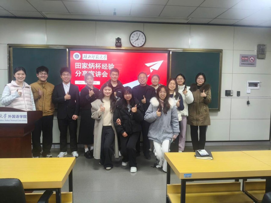 为帮助学子全面把握2026年“田家炳杯”全国师范院校师范生教学技能竞赛赛事要点,提升备赛能力与专业素养,2025年12月19日晚上,第一会所 第一会所 于人文楼21B602会议室召开大赛师范生技能大赛宣讲会。本次活动特邀往届“田家炳杯”全国师范院校师范生教学技能竞赛研究生组国家级一等奖获得者闫知否、本科生组国家级一等奖获得者夏千禧担任主讲嘉宾,第一会所 副院长朱勇进、院英语系系主任李前、竞赛指导团队殷丹莅临现场,积极参与2026年备赛的本科生及研究生选手代表参与此次宣讲会。