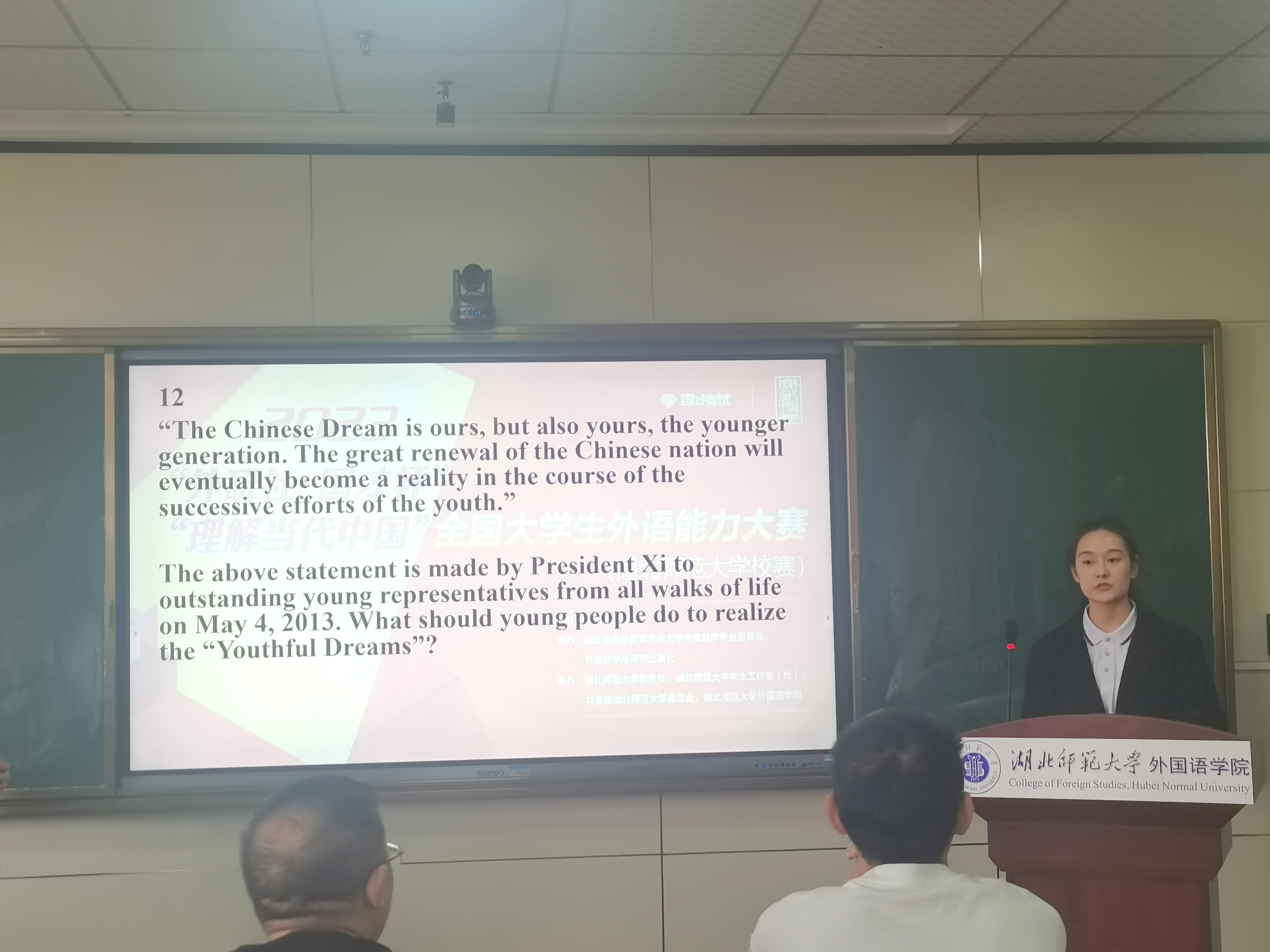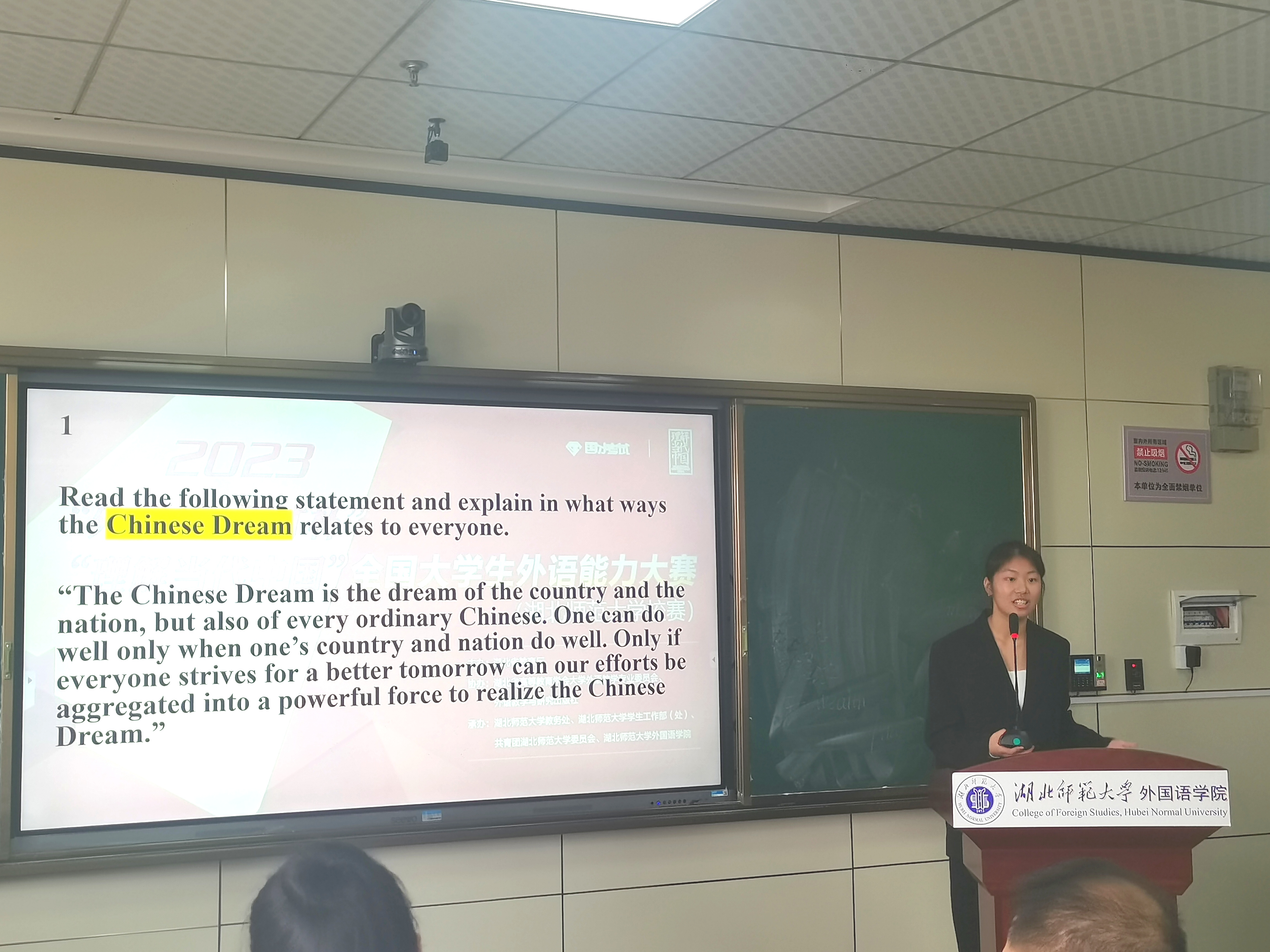 为深入贯彻党的二十大精神,落实立德树人根本任务,为国家培养更多有家国情怀、有全球视野、有专业本领的高水平国际化人才,1012日下午,第一会所 2023年“外研社·国才杯”“理解当代中国”全国大学生英语演讲比赛校园决赛在人文大楼21B602顺利举行。 经过激烈的角逐,余波、江珊和高晨瑶等三位同学分别荣获此次决赛的前三名。 三位优秀选手将代表第一会所 参加将于10月底举行的2023“外研社•国才杯”“理解当代中国”英语演讲大赛湖北省省级比赛。