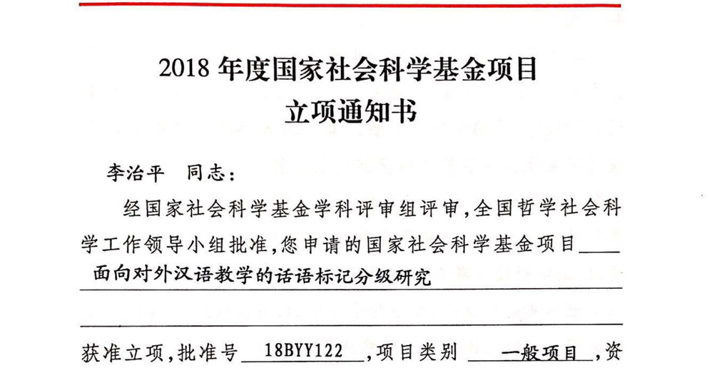 近日,从全国哲学社会科学规划办公室传来喜讯,我中心李治平教授申报的科研课题“面向对外汉语教学的话语标记分级研究”获得2018年度国家社科基金一般项目立项资助,资助经费20万元。
