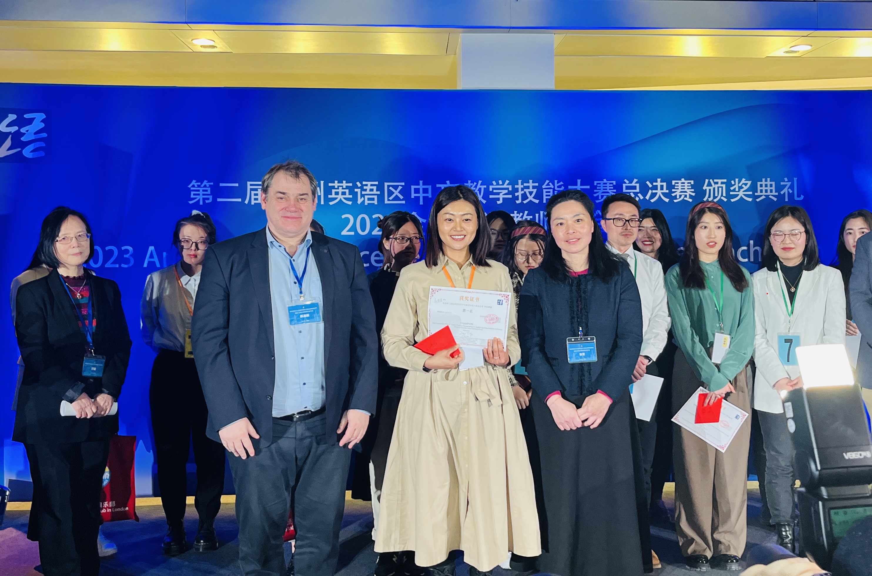 在颁奖典礼上,中国驻英国大使馆公使衔参赞张晋、匈牙利罗兰大学副校长郝清新教授共同为赵思琪老师颁奖。赵思琪感言,通过参加比赛锻炼了能力、提高了水平,非常感谢大赛组委会提供的切磋交流机会,以及奥斯特大学北爱尔兰孔子学院的培养、支持与帮助。
