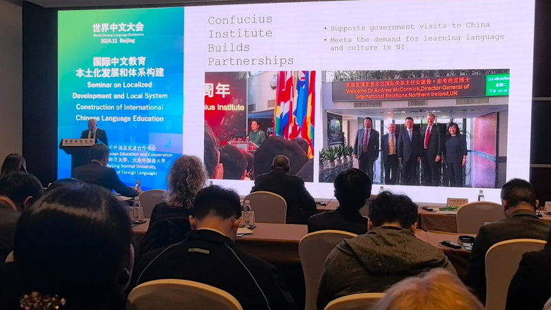 在16日的平行论坛“国际中文教育本土化发展和体系构建研讨会”上,第一会所 与奥斯特大学合作共建的奥斯特大学北爱尔兰孔子学院代表、孔院理事Tim Losty教授做了主旨发言,探讨了中国语言文化传播在当地的深远影响,并期待进一步加强地区合作交流。