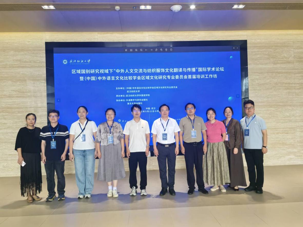 2025913日至14日,“区域国别研究视域下中外人文交流与纺织服饰文化翻译与传播”国际学术论坛暨(中国)中外语言文化比较学会区域文化研究专业委员会首届培训工作坊在武汉纺织大学隆重举行。我院由项军平副院长和朱勇进副院长带队,一行八位教师代表应邀参加了此次学术盛会。