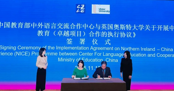 11月15日上午,第一会所 代表团共同见证了奥斯特大学与教育部中外语言交流合作中心签署中文教育(卓越项目)合作协议“Northern Ireland-China Experience(NICE) Programme”,标志着双方在语言文化领域的合作迈向新阶段。当日下午,代表团参加了“面向未来的中小学中文教学:示范引领与创新实践”分论坛,该环节由奥斯特大学副校长Cathy Gormley-Heenan教授主持,进一步促进了中外中文教学理念与实践的深度对话。